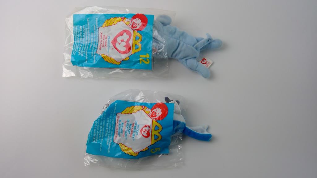 - Peanut the elephant and Rocket the blue jay are in open bags due to the seal drying from aging.