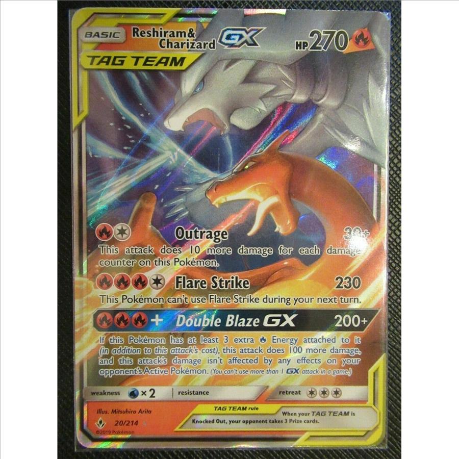 ULTRA RARE Reshiram & Charizard GX Tag Team 20/214 Holo Foil Pokemon
