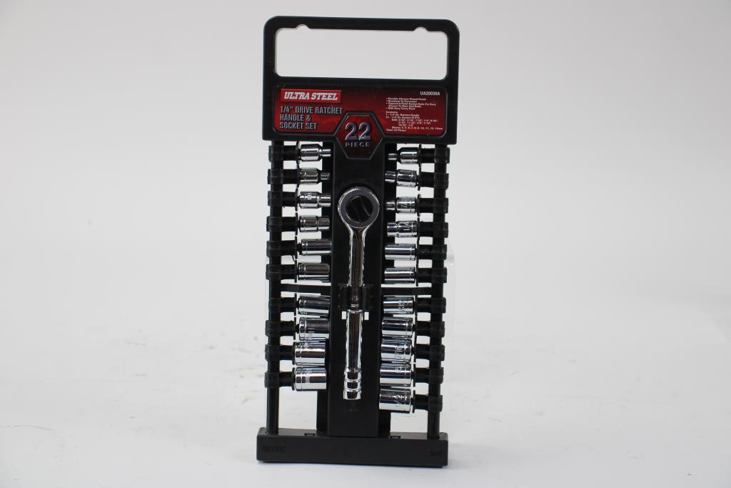 Ultra Steel 1/4" Drive Ratchet Handle & Socket Set 22pc