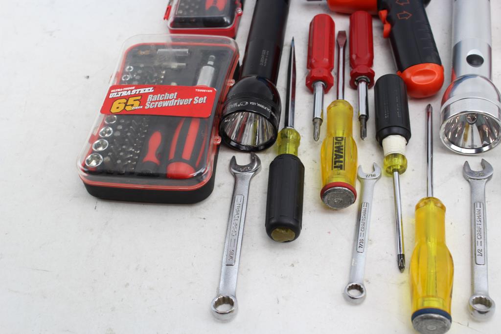 Ultrasteel Ratchet & Screwdriver Set, Husky Precision Screwdriver Set, Flashlights, Hand Tools, & More; 10+ Pieces