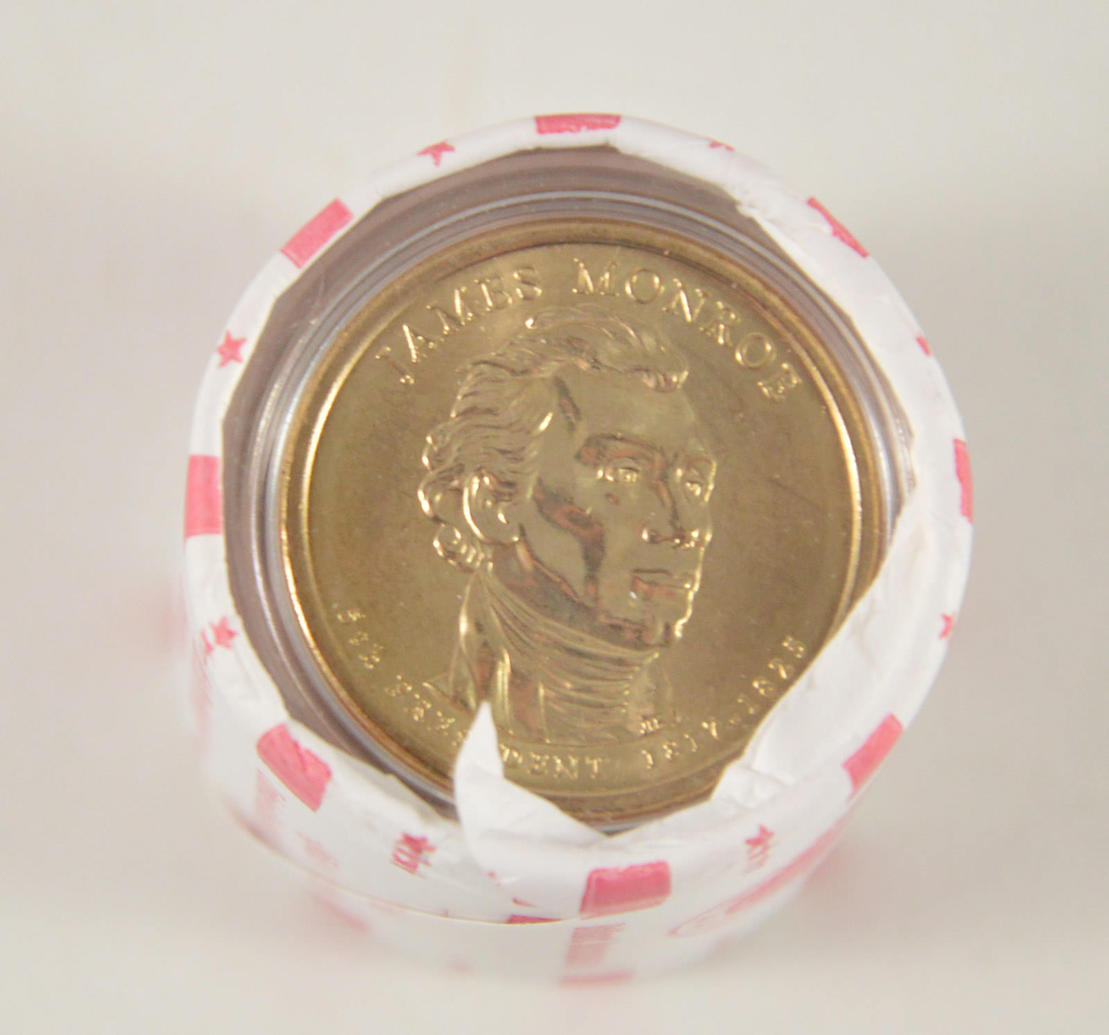 Unbroken Vault Roll DATE - James Monroe - 10 Presidential Dollar Coins - Individually Holdered! - $10.00 Face