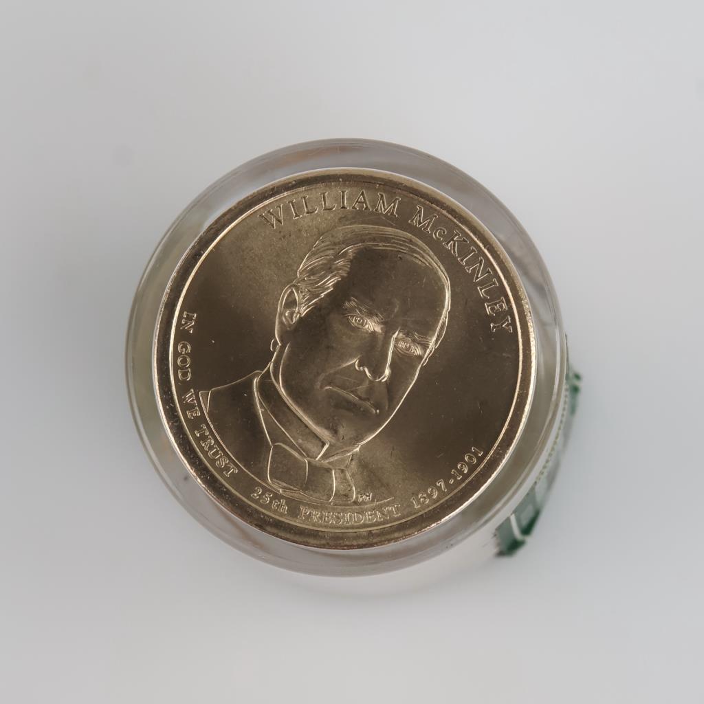 UNC Danbury Mint Presidential Dollar Roll, William McKinley, 12 Coins