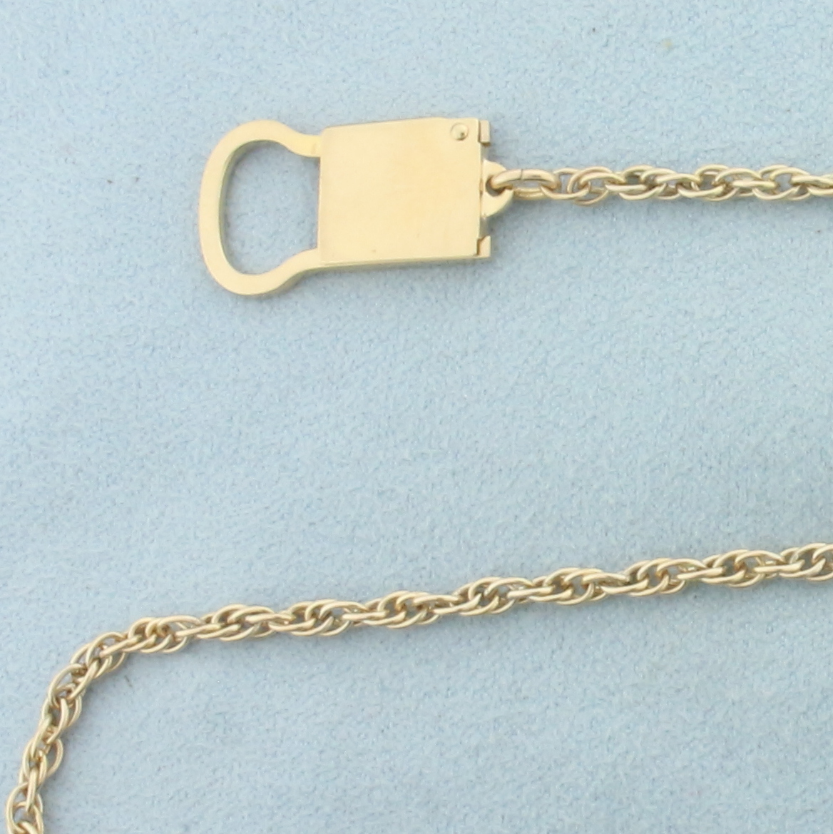 In 10k Yellow Gold. 17 1/2 inches long. 2.5mm wide chain. Unique lock clasp. 9.5g.