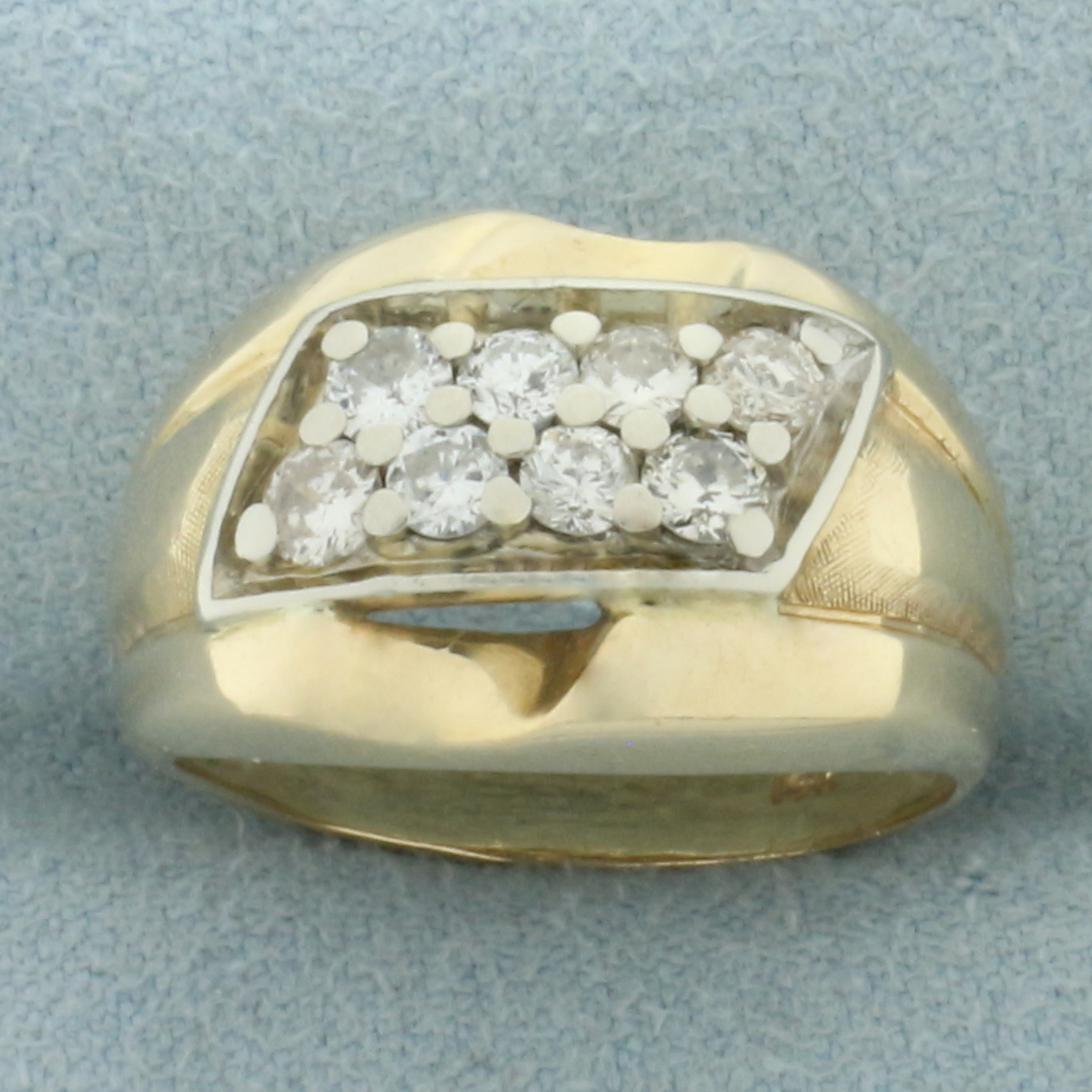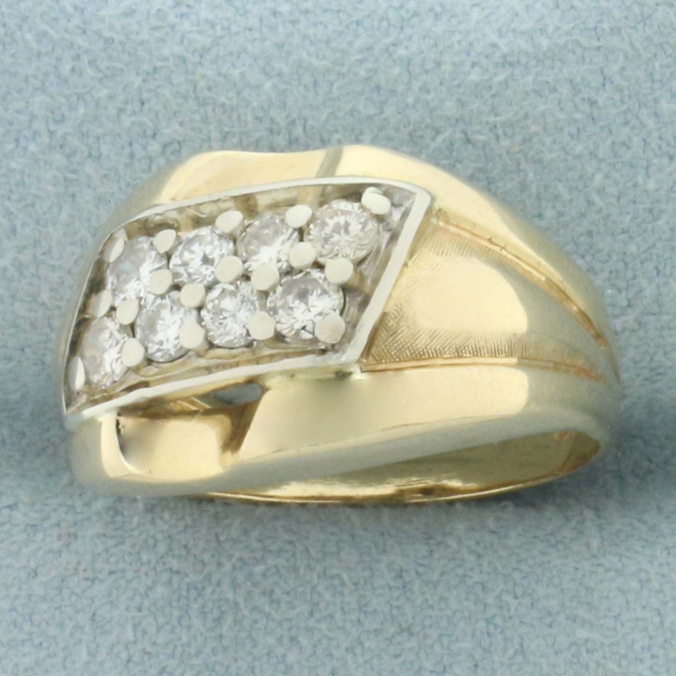In 14k yellow gold. Contains eight high quality diamonds, 1/2ct TW, G color/I clarity. Size 6.5. 5.2g.