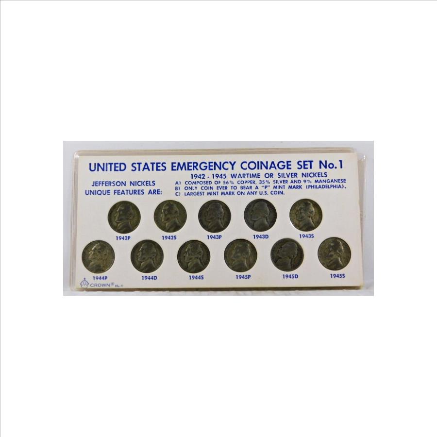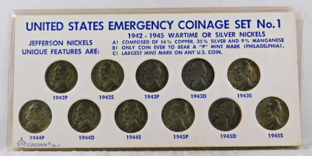 United States Emergency Coinage Set #1*1942-1945 Wartime, Silver Nickels*11 Nickels in Storyboard