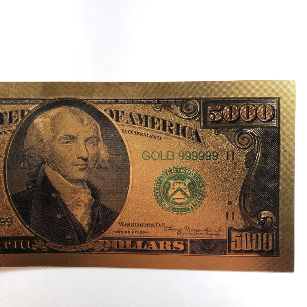 United States Gold Layered $5000 Silver Certificate *24kt Gold Layered