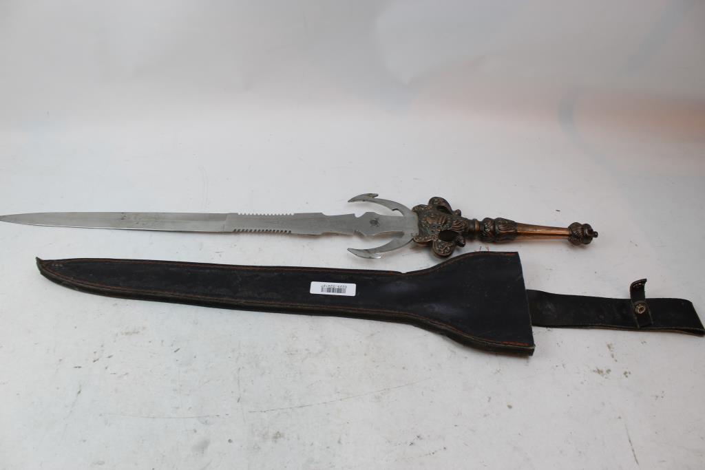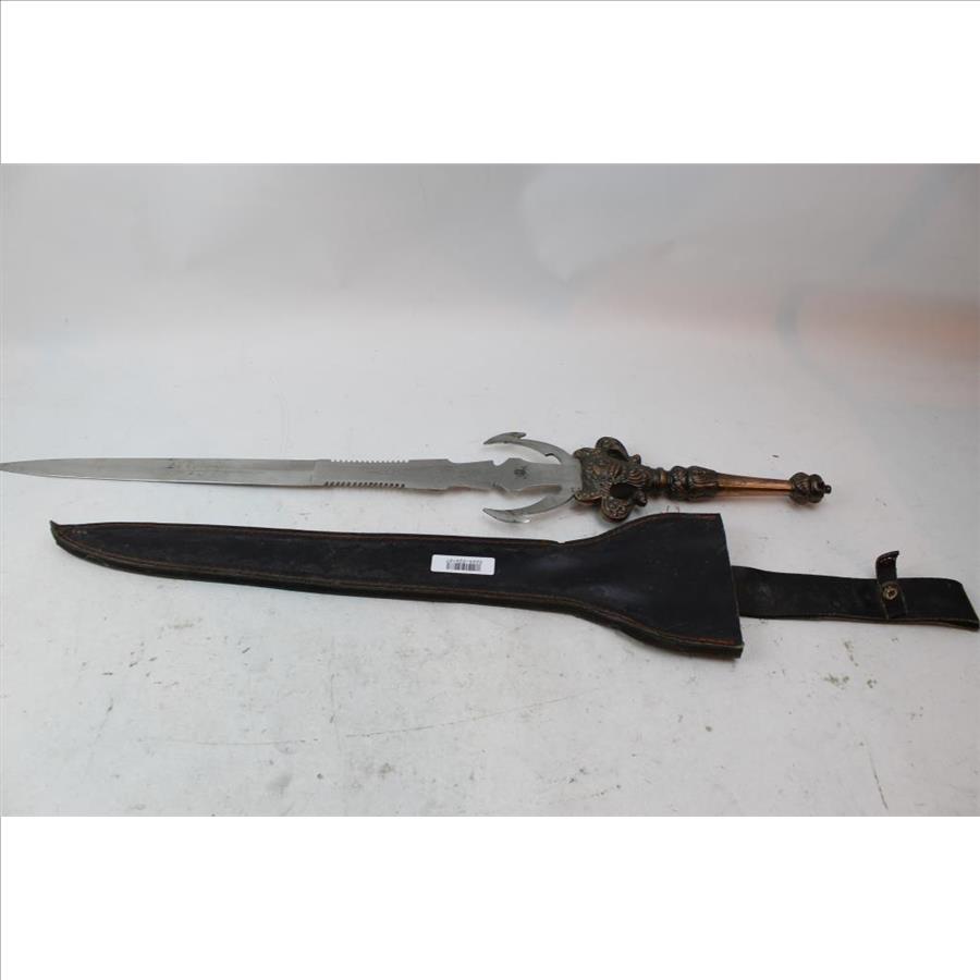 Get a great deal with this online auction presented by PropertyRoom.com on behalf of law enforcement or public agency client. - Brand: Unknown Brand Double Edged Partially Serrated Sword And Sheath