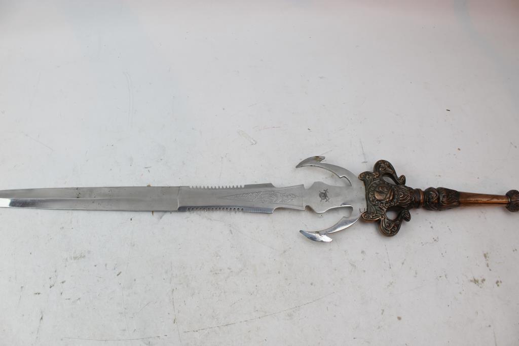 Unknown Brand Double Edged Partially Serrated Sword And Sheath