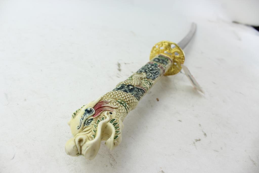 Unknown Brand Samurai Sword With Dragon Hilt And Scabbard