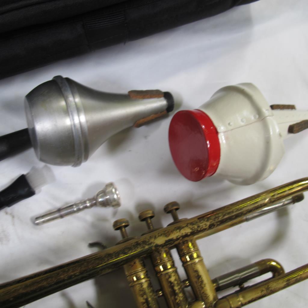 - Cosmetic Condition: Fair to poor, rust present on trumpet, scrapes and scratches, visible wear, light wear on case and accessories