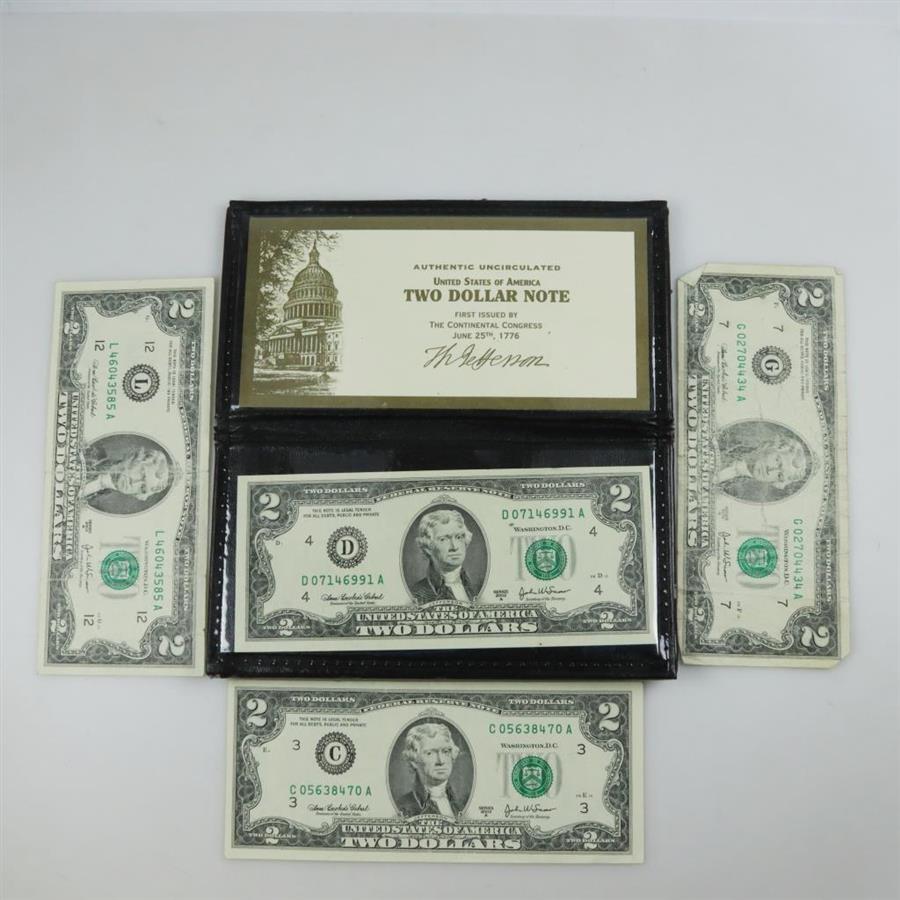 U.S. $2 Dollar Bill Federal Reserve Note, 4 Pieces