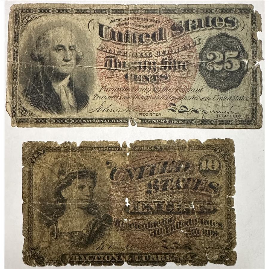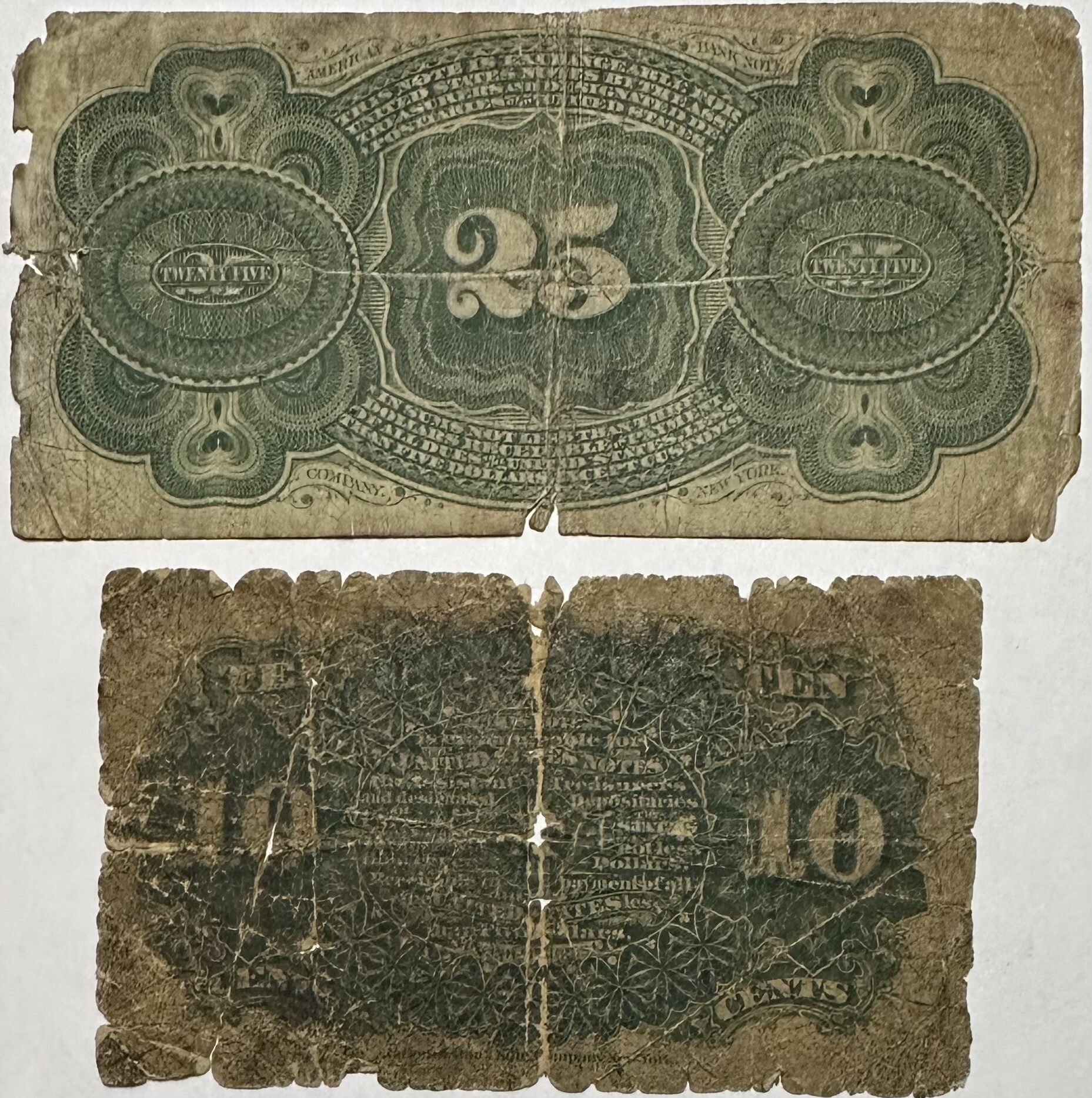 U.S. Fractional Currency! 1863 25 Cents and 1863 10 Cents Notes - Extremely UNIQUE & RARE