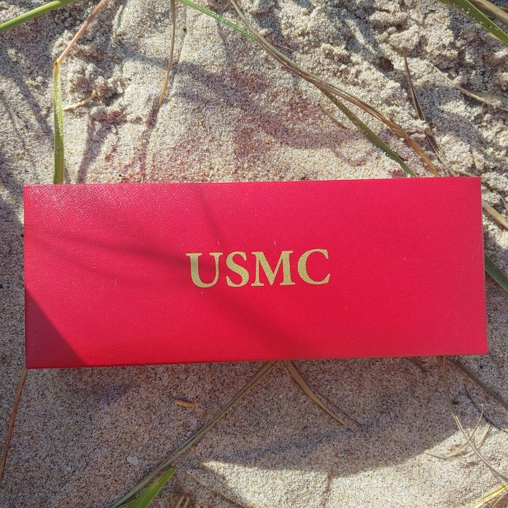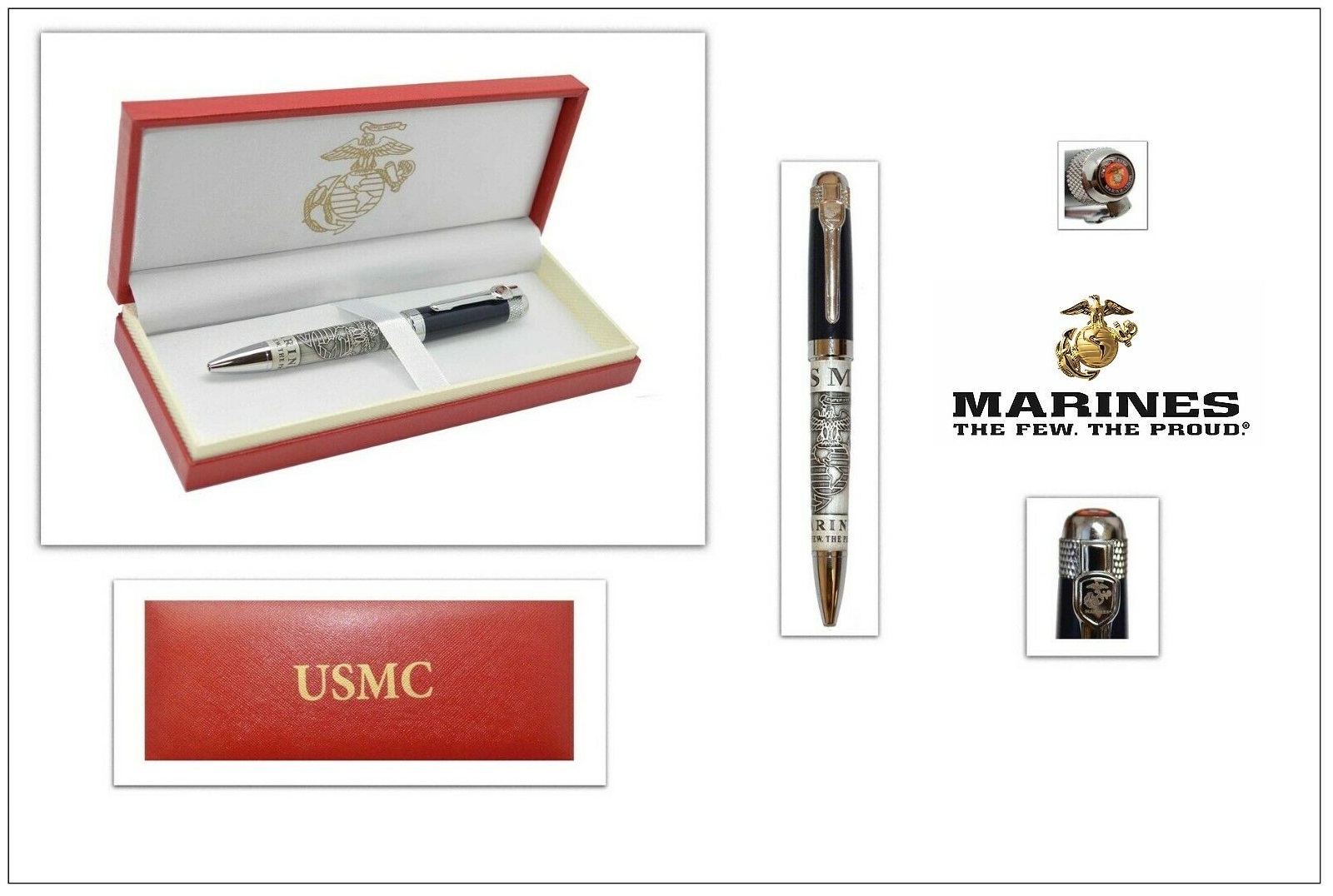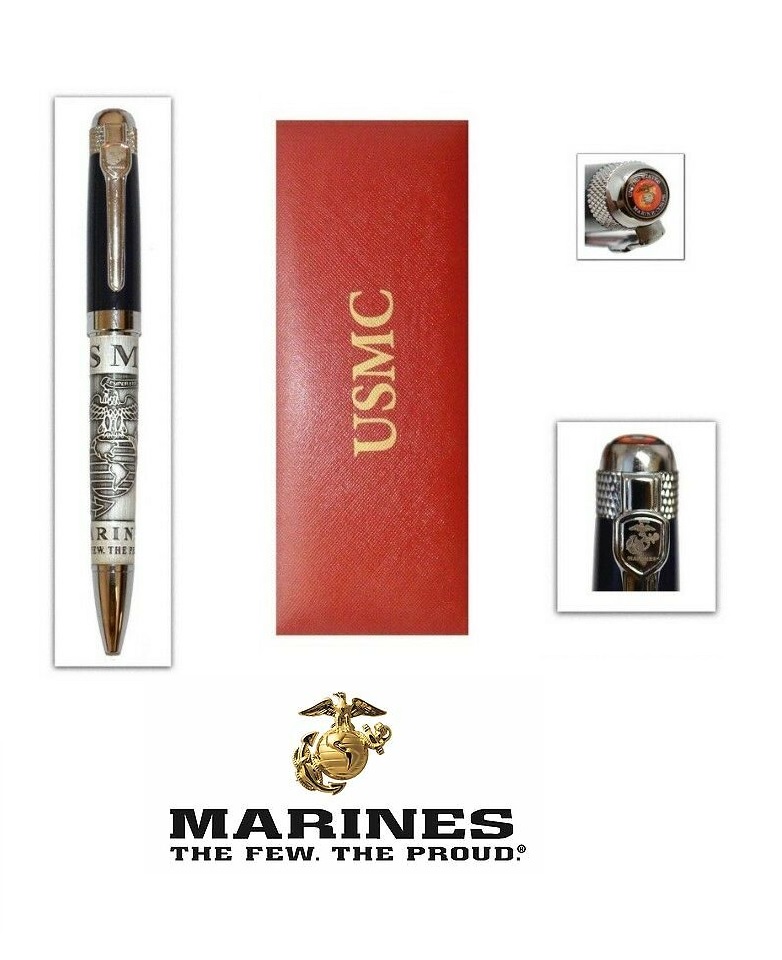 Main body of the pen barrel features the Eagle, Globe & Anchor etched into steel body, along with "USMC" and "The Few. The Proud."