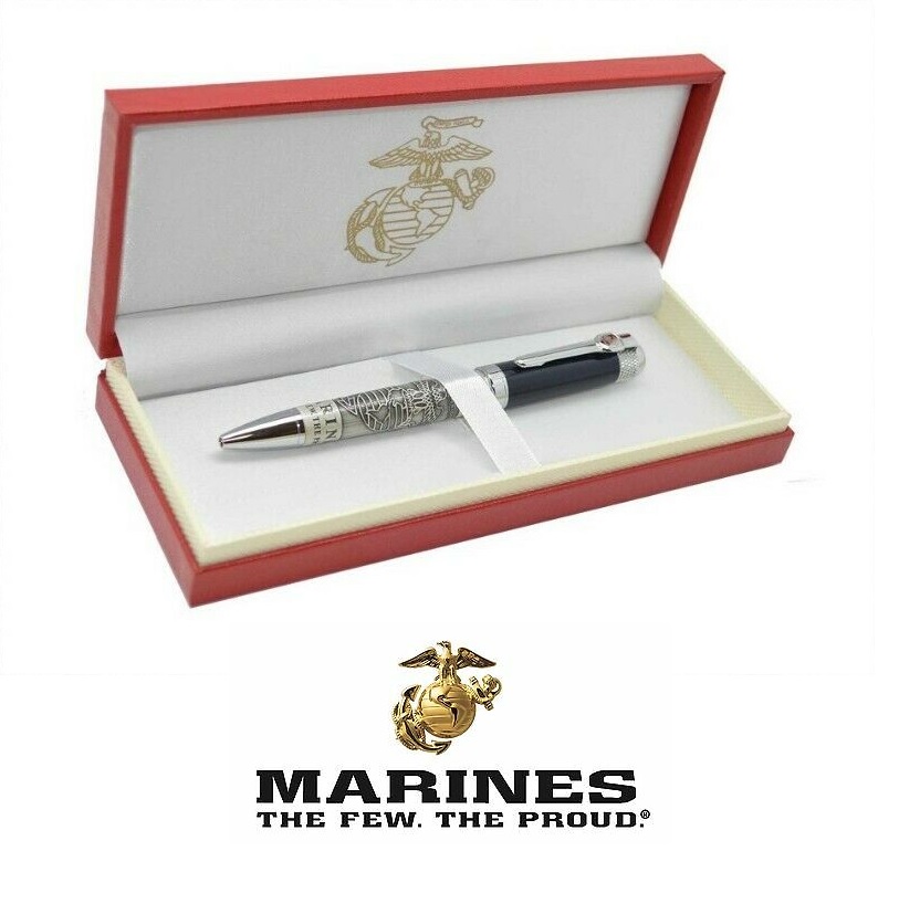 US Marines USMC Pewter Ballpoint Pen Gift Set BLUE