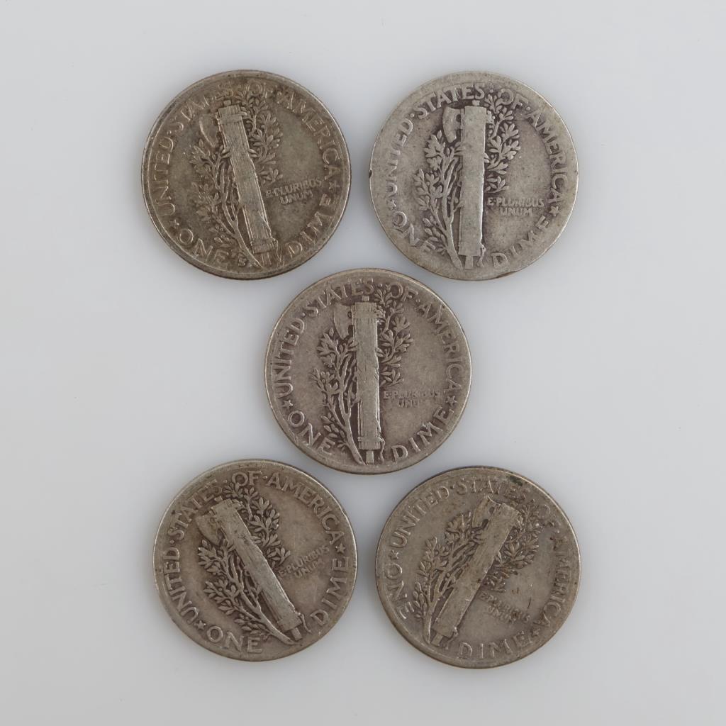 US Mercury Silver Dimes, 5 Pieces