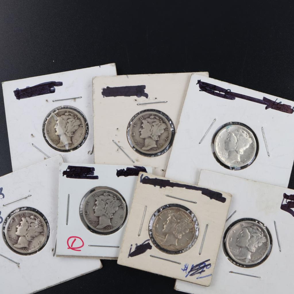 US Mercury Silver Dimes, 7 Pieces