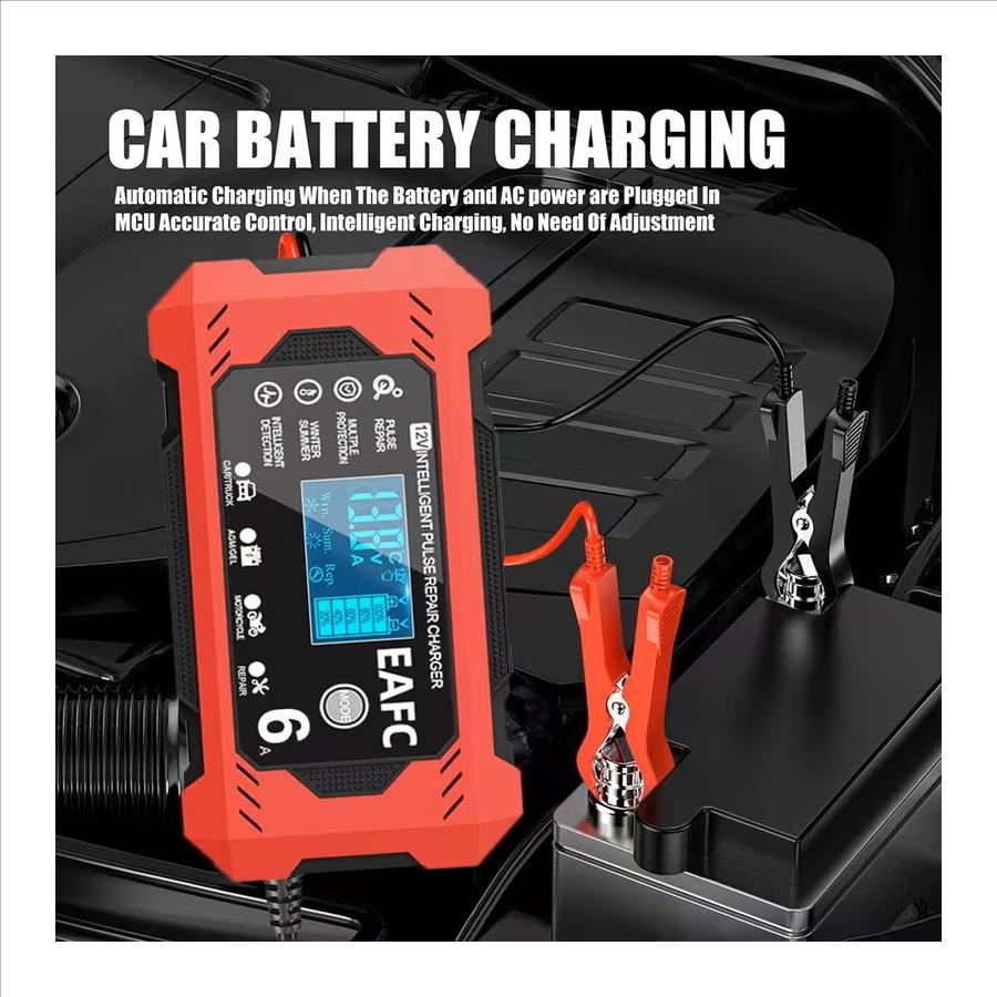 US Plug 12V 6A Smart Battery Charger with LCD Display, Smart Battery Trickle Charger, Temperature Compensation - Battery Maintainer Desulfator, Overcharge & Short Circuit Protection for Car Truck Motorcycle Lawn Mower Marine Lead Acid Charger