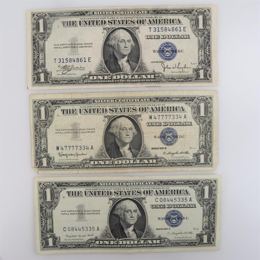 US Silver Certificate One Dollar, 3 Pieces