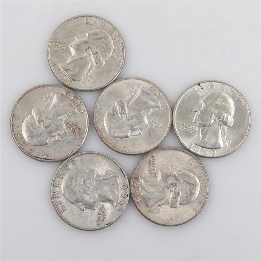 US Silver Quarters, 6 Pieces