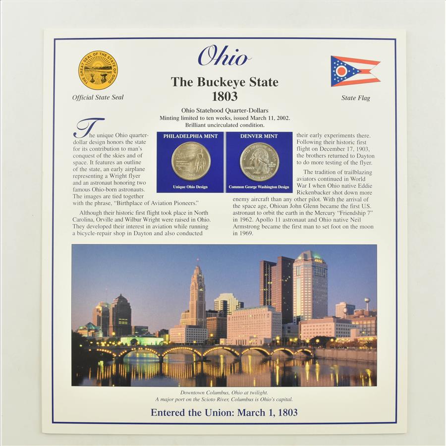 US Stamp & 2 CoinState Quarter Beautifully Displayed Coin Set Story Board