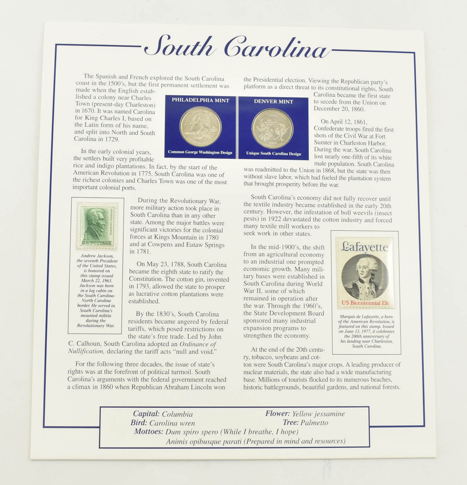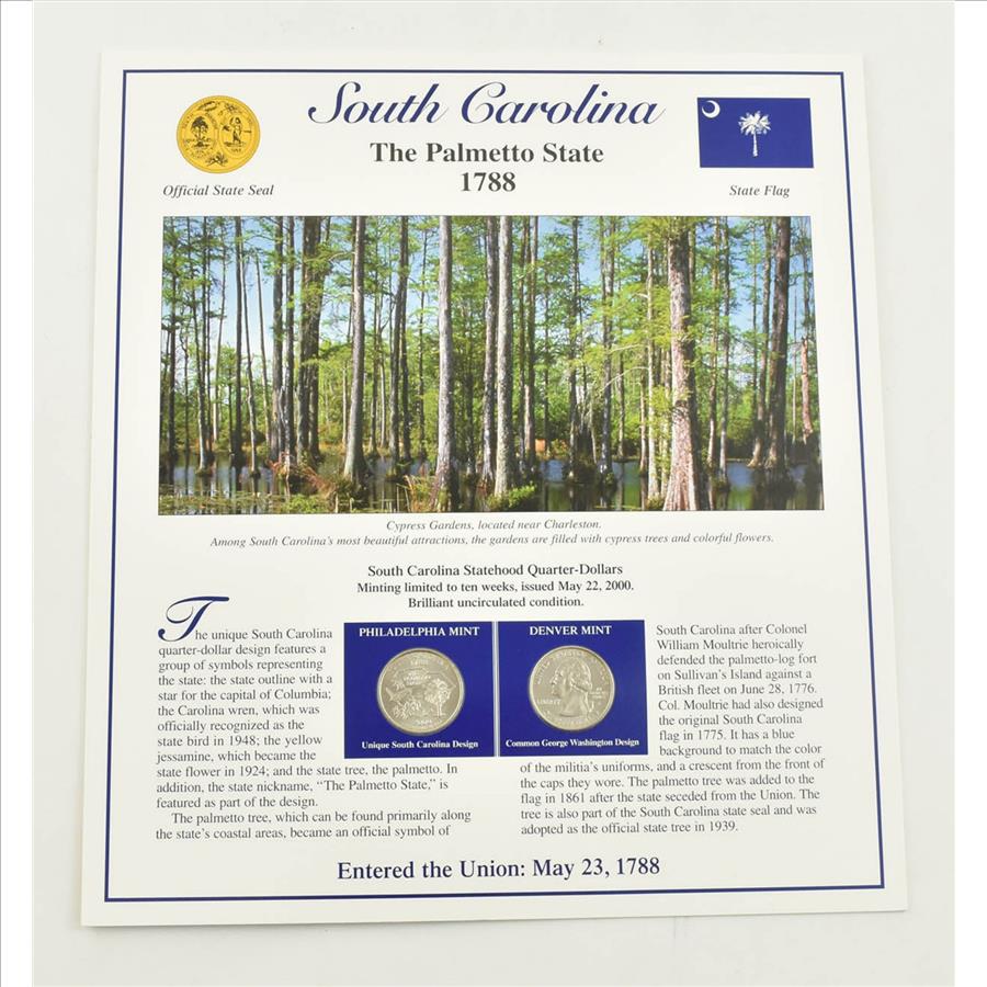 US Stamp & 2 CoinState Quarter Beautifully Displayed Coin Set Story Board