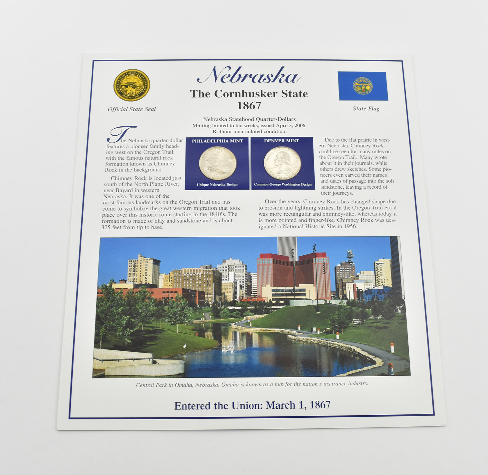 US Stamp & 2 CoinState Quarter Beautifully Displayed Coin Set Story Board
