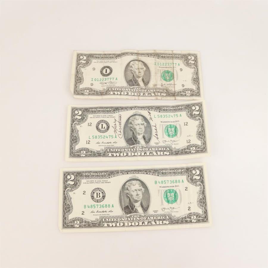 US Two Dollar Federal Reserve Note; 3 Pieces