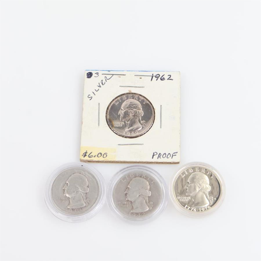 US Washington Silver Quarters And Bicentennial Silver-clad Quarter, 4 Pieces
