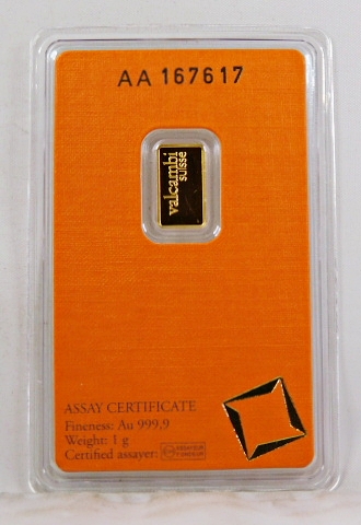 Valcambi Suisse One Gram 999,9 Fine Gold*With Assay Certificate in Tamper Proof Package