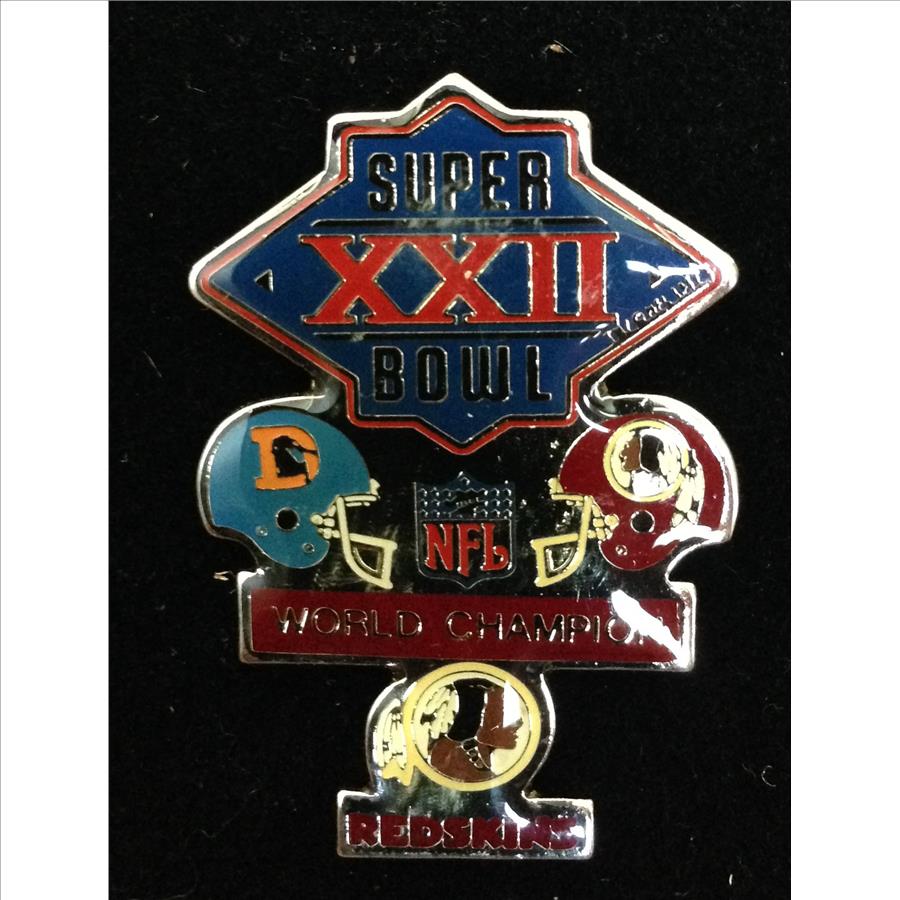 Very Rare Washington Redskins vs Denver Broncos Super Bowl XXII Championship Game Commemorative Pin Circa 1988