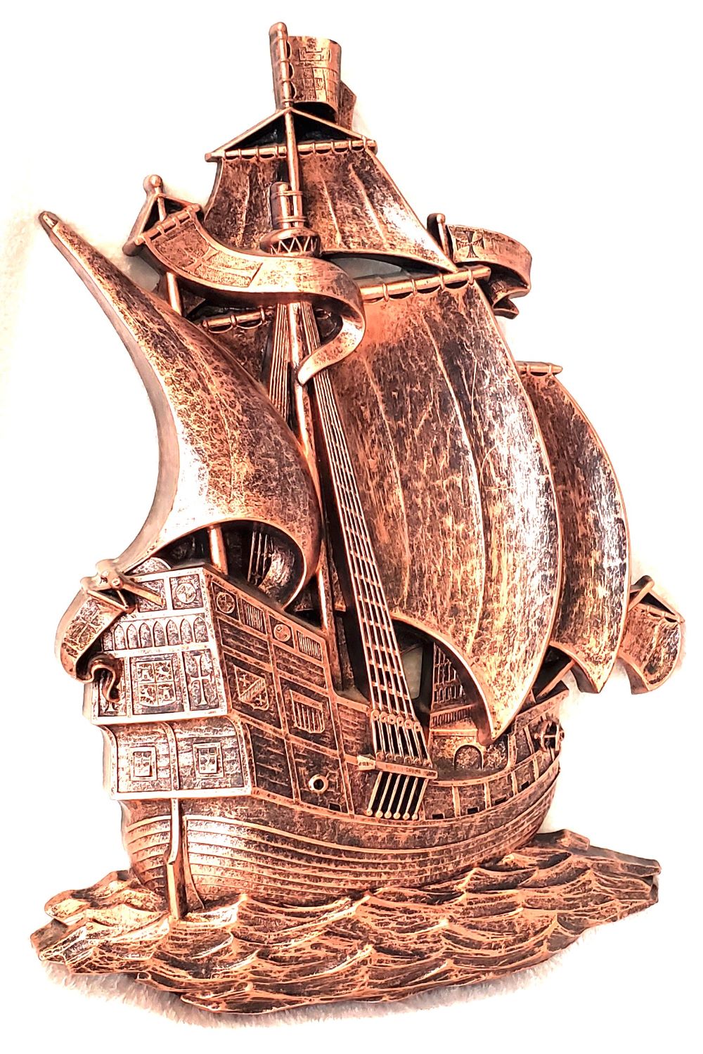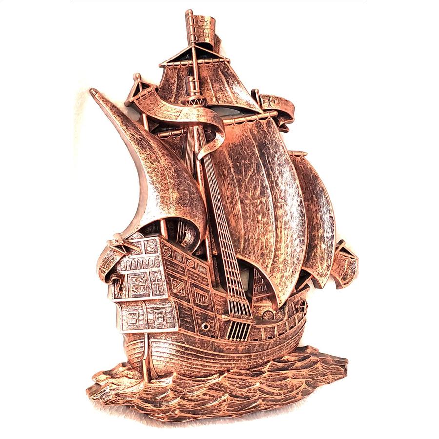 Vintage 1970 Syroco Spanish Galleon Ship 18" Copper 3D Wall Art