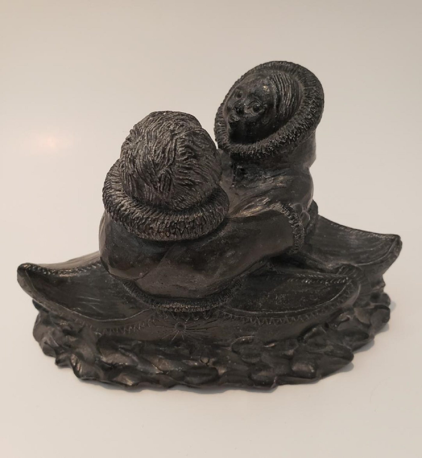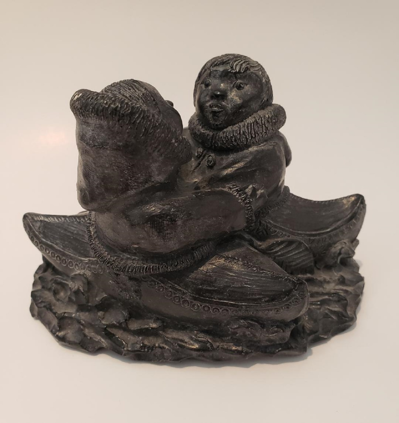 Eskimo couple canoeing sculpture, by Wolf Original/The Wolf Sculpture.