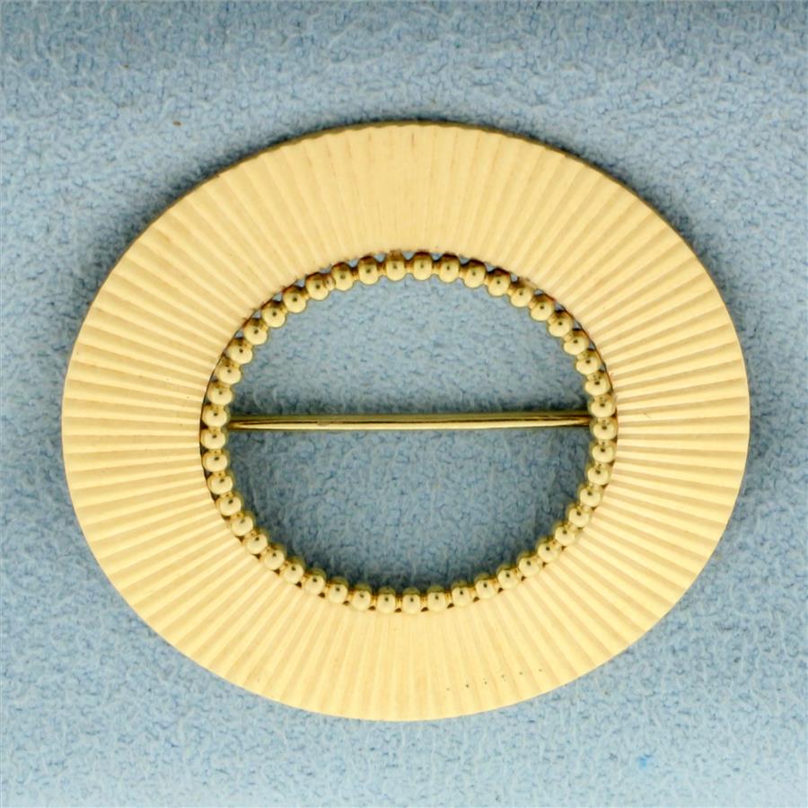 In 14K Yellow Gold. 1 1/4 inch diameter. 5.1g