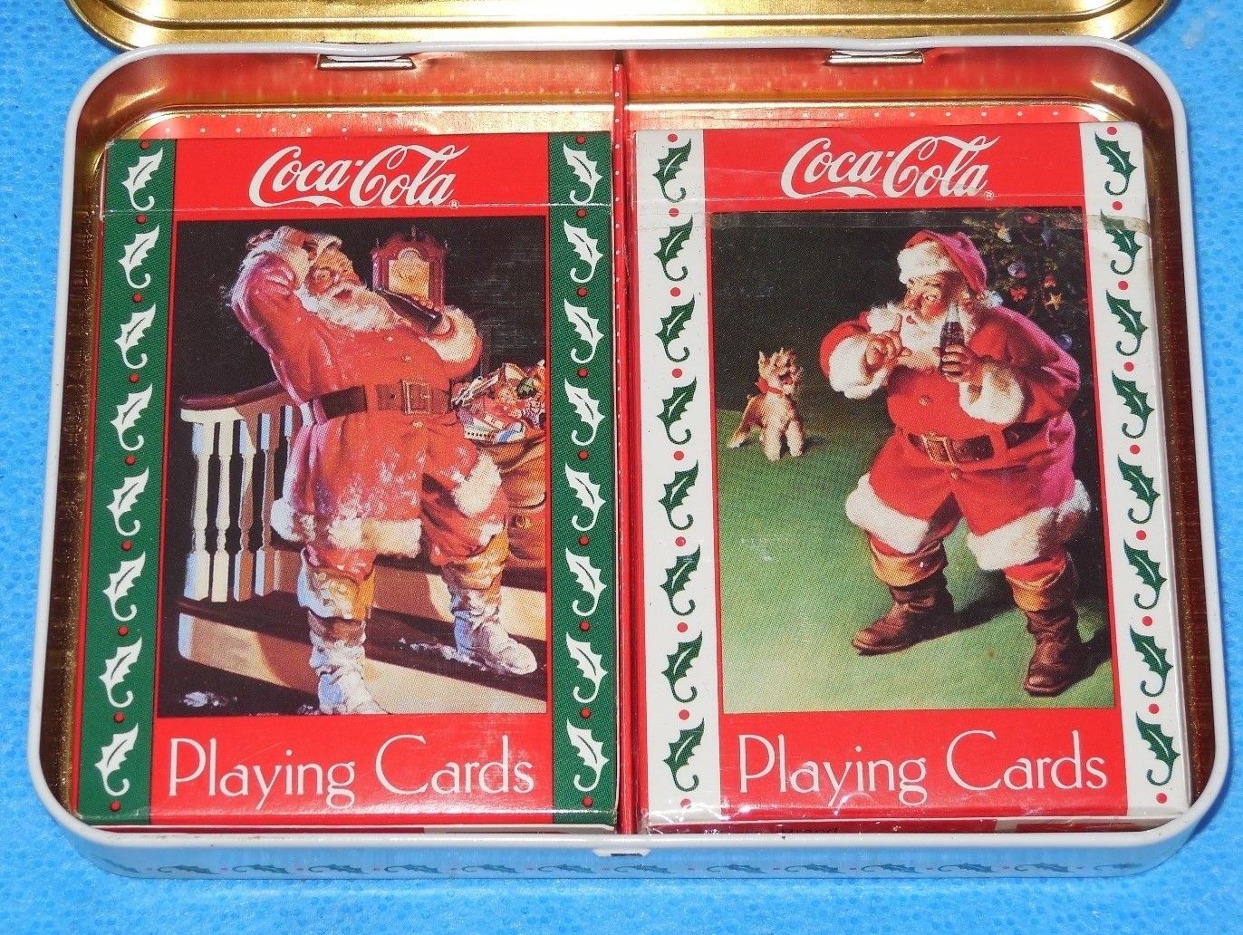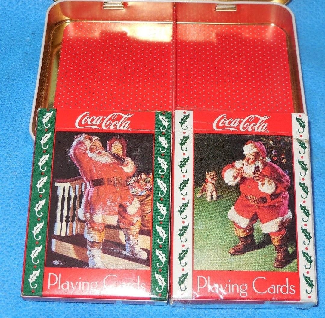 Vintage Coca Cola Double Deck Santa Playing Cards With Tin