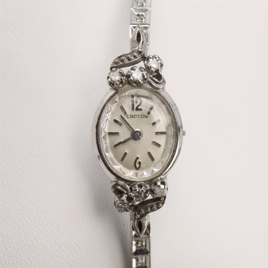 Vintage Croton Watch With 14kt White Gold Diamond Band