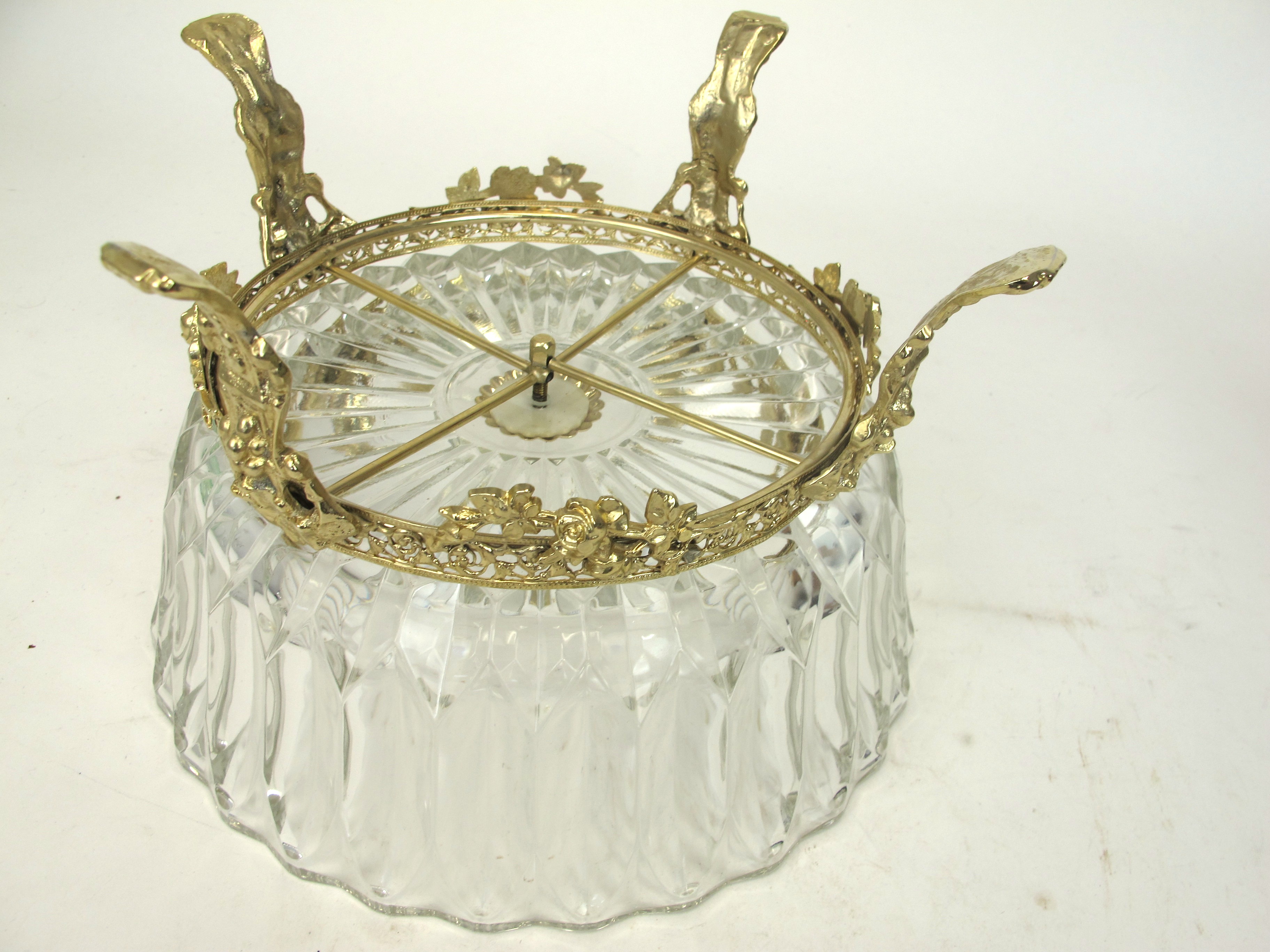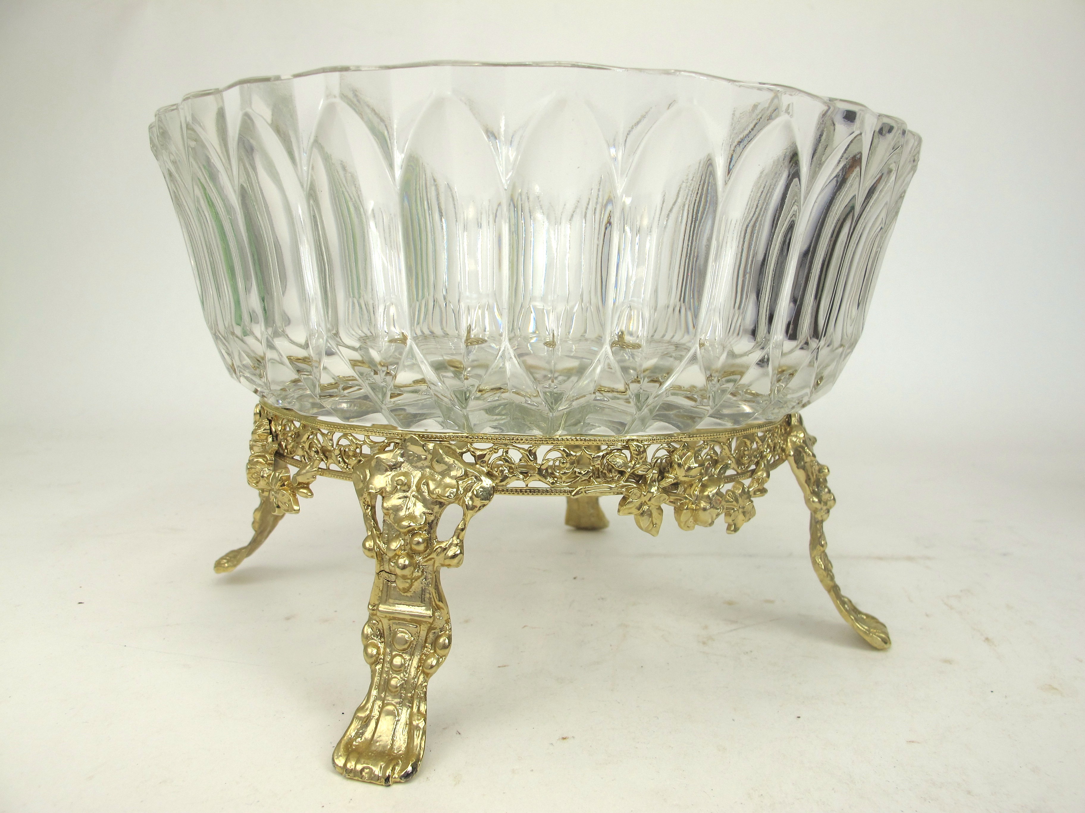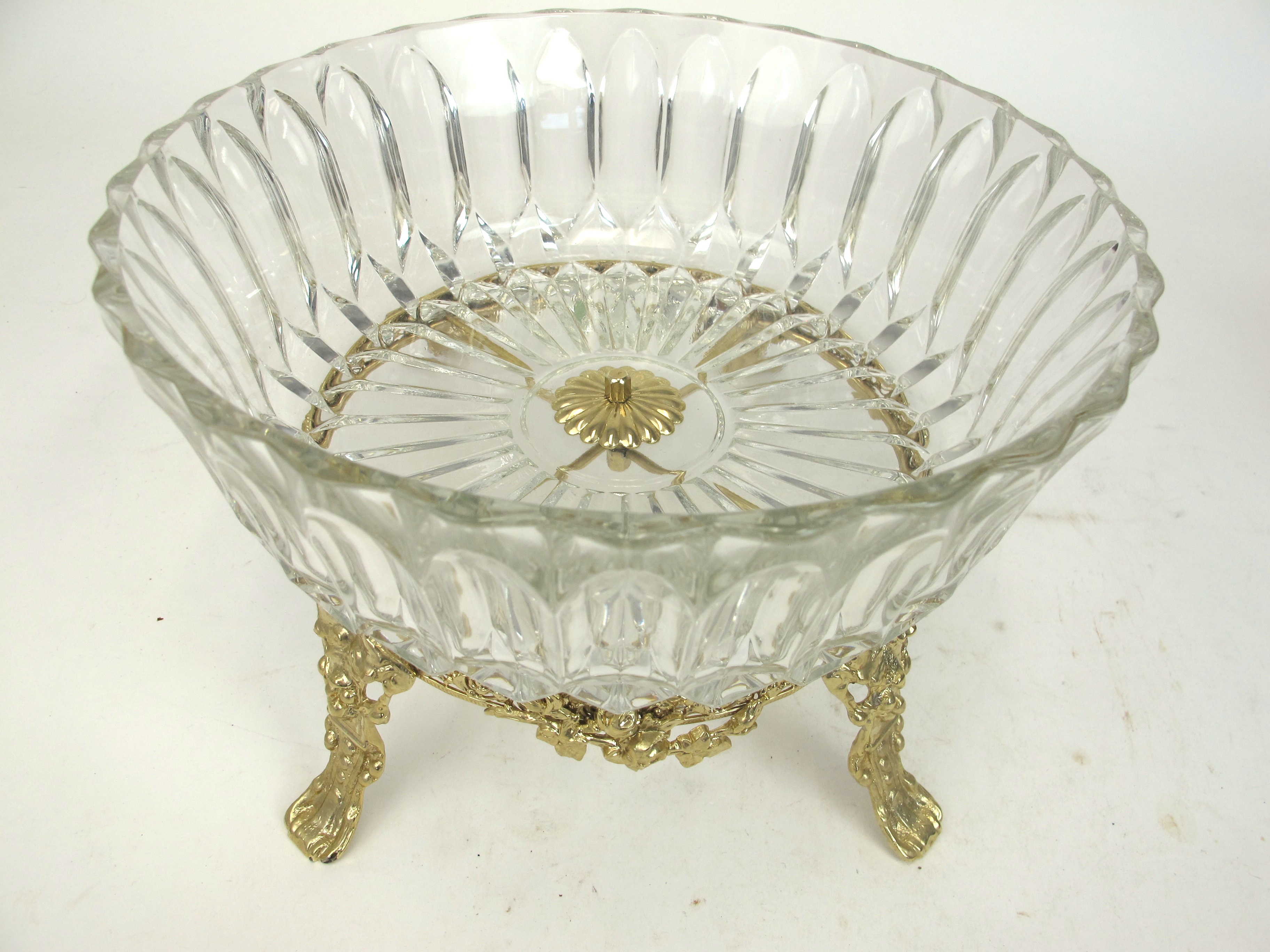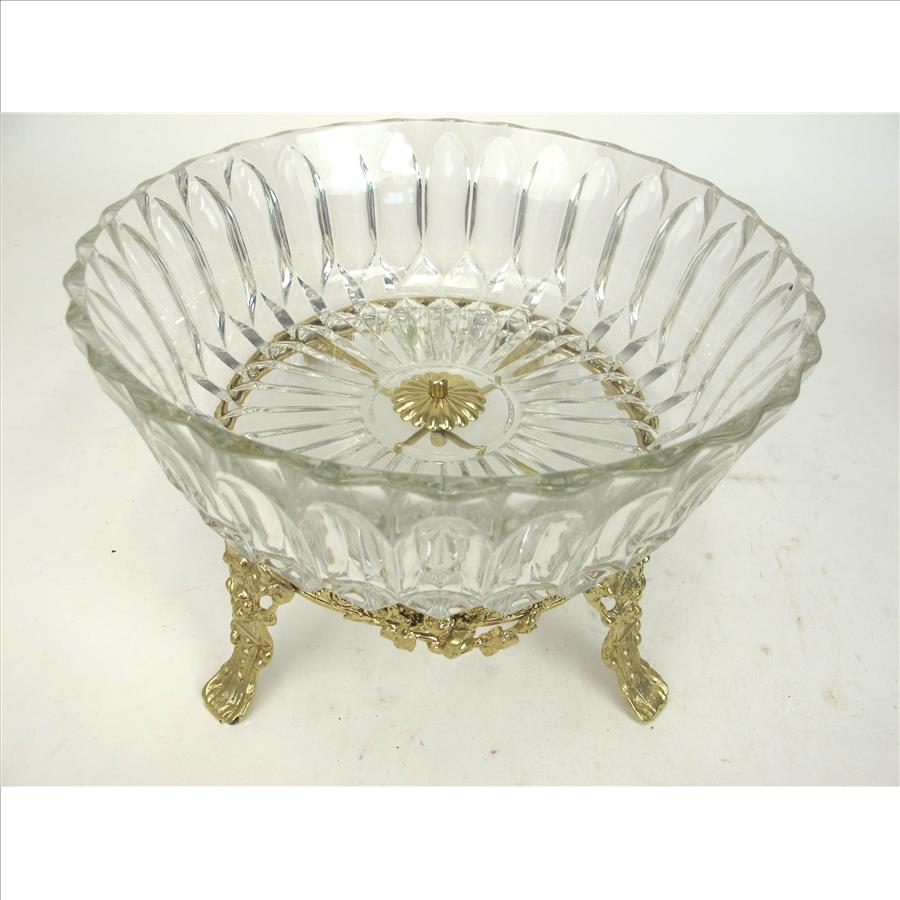 Vintage Crystal Bowl on Footed Brass Base