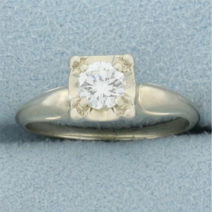 Vintage Diamond Solitaire Engagement Ring in 14K White Gold
