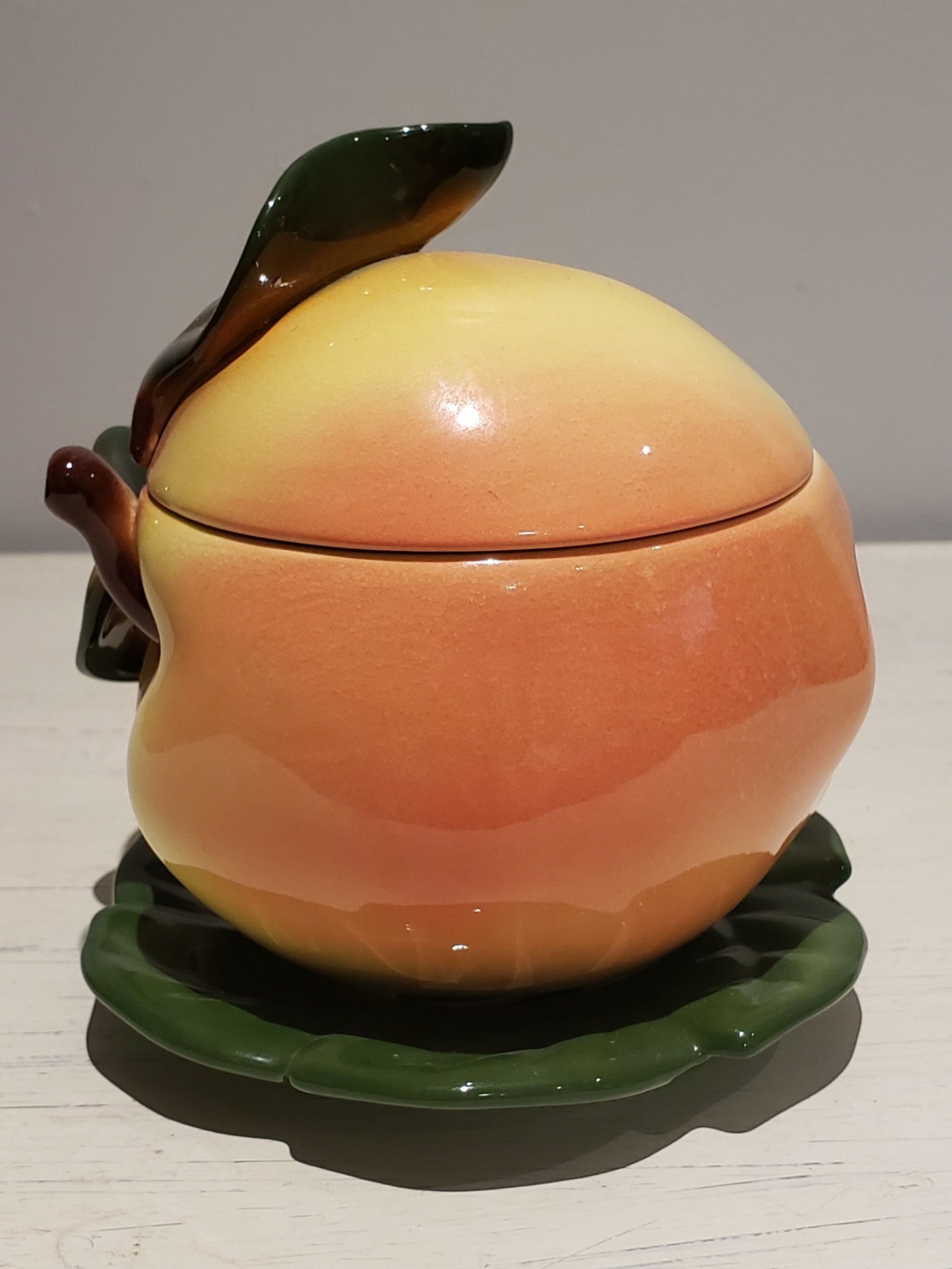 Vintage Goebel W Germany 1974 ceramic glazed apple shaped marmalade jar with lid