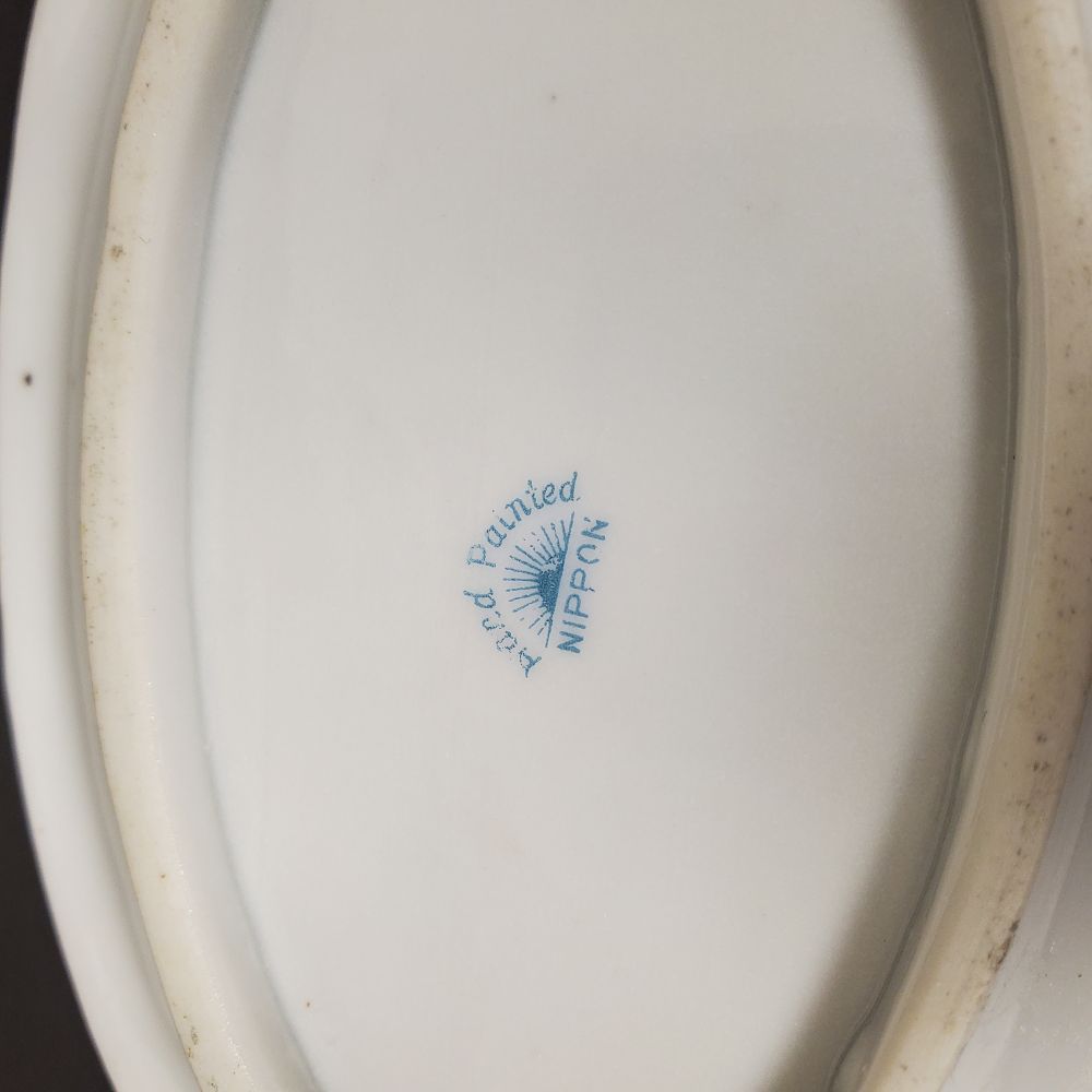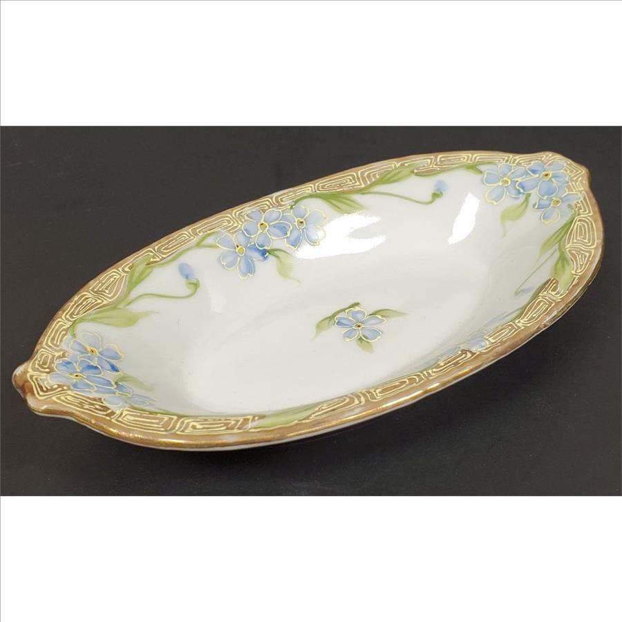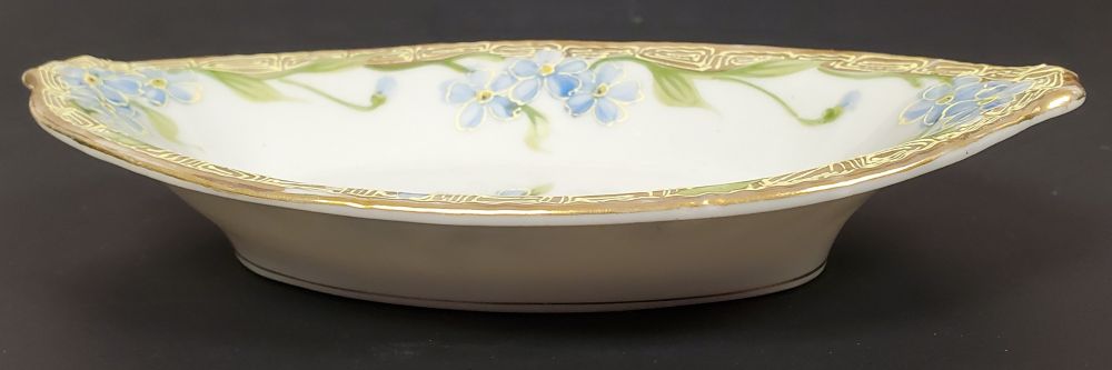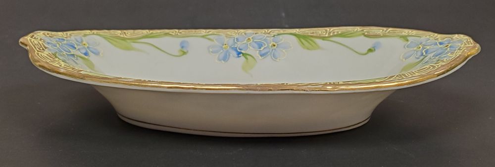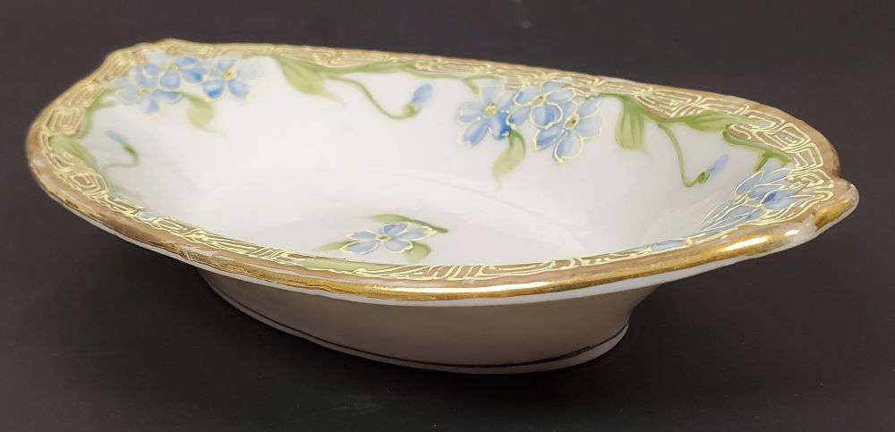 Vintage Hand Painted Nippon Fine Bone China Oval Dish w Gold Gild