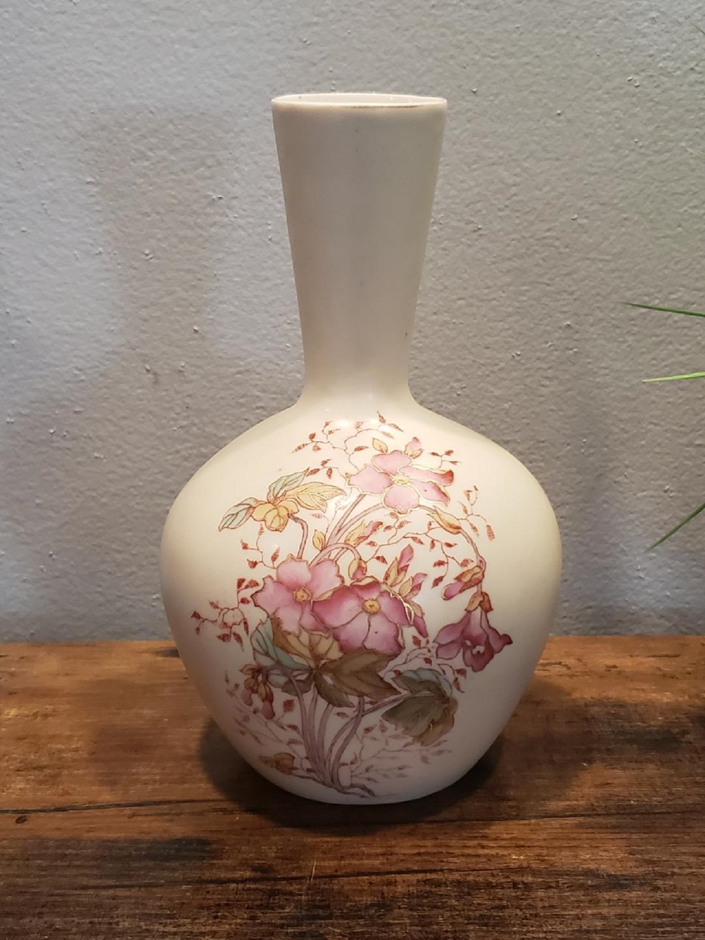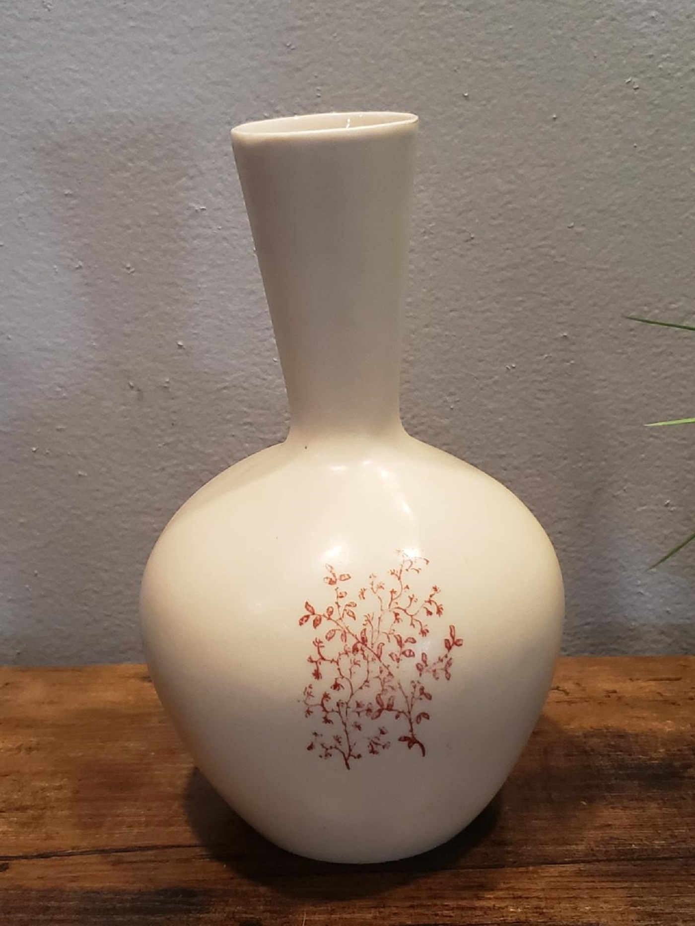 Lovely matte porcelain bud vase, hand painted with beautiful floral design.