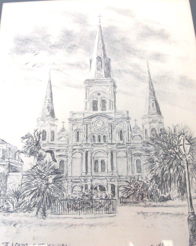 • Lithograph is of a Drawing of St. Louis Cathedral