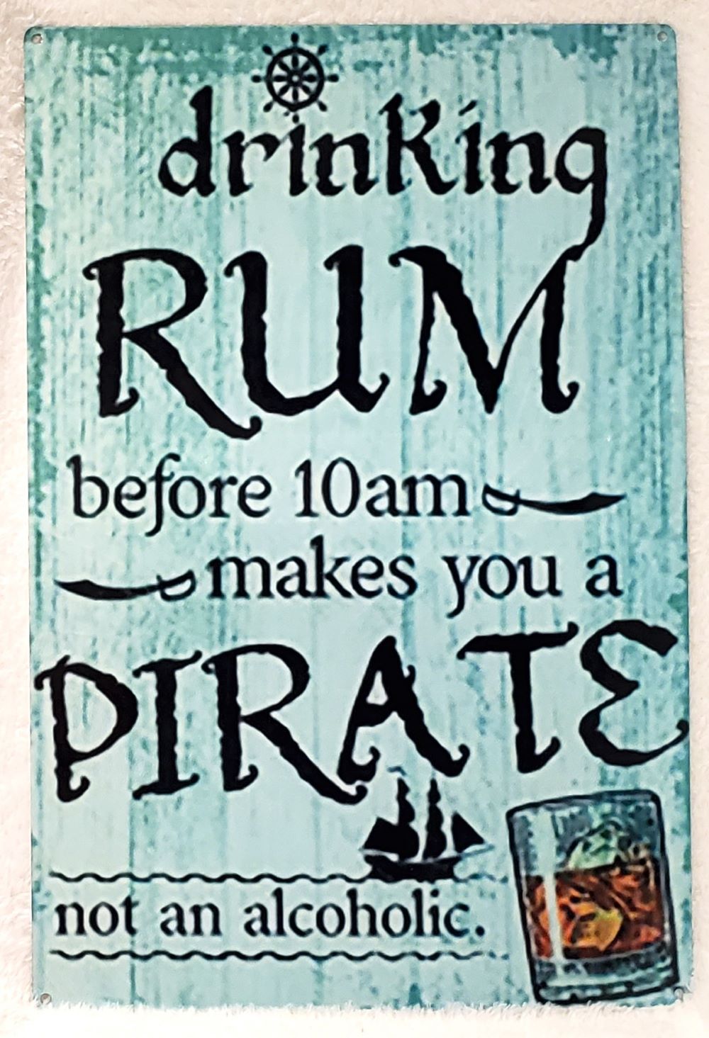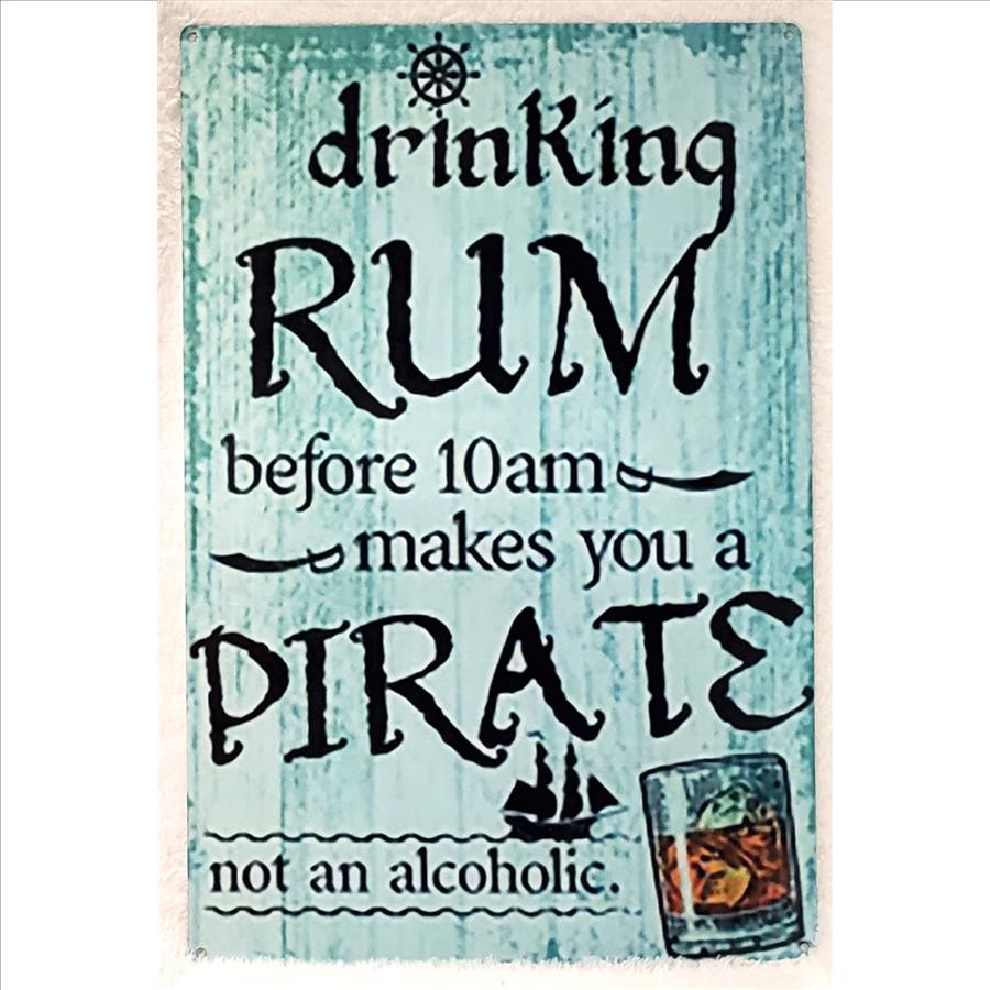 Vintage Looking Drinking Rum Metal Sign 8" x 12"