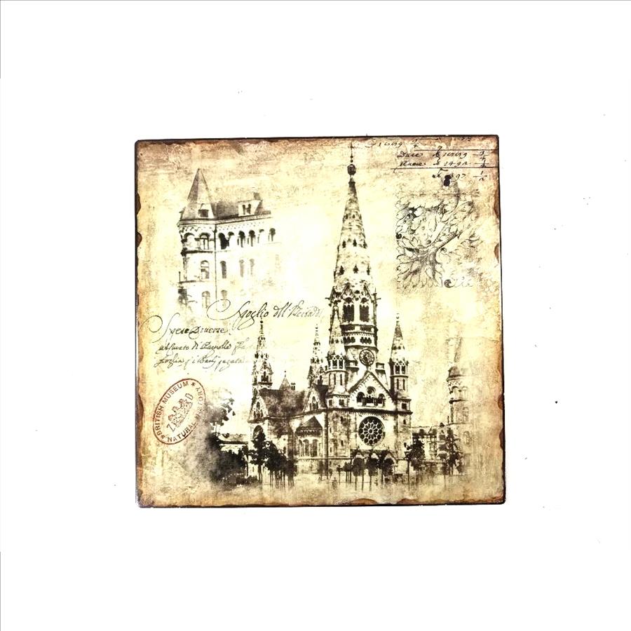 Vintage Looking Square Metal Sign - Cathedral