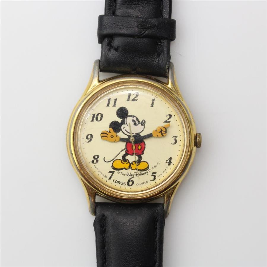 Vintage Lorus Disney Mickey Mouse Gold Tone And Black Leather Watch