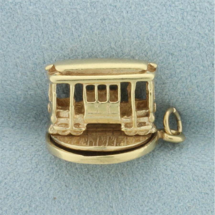 Vintage Mechanical Cable Car Trolley Charm in 14k Yellow Gold