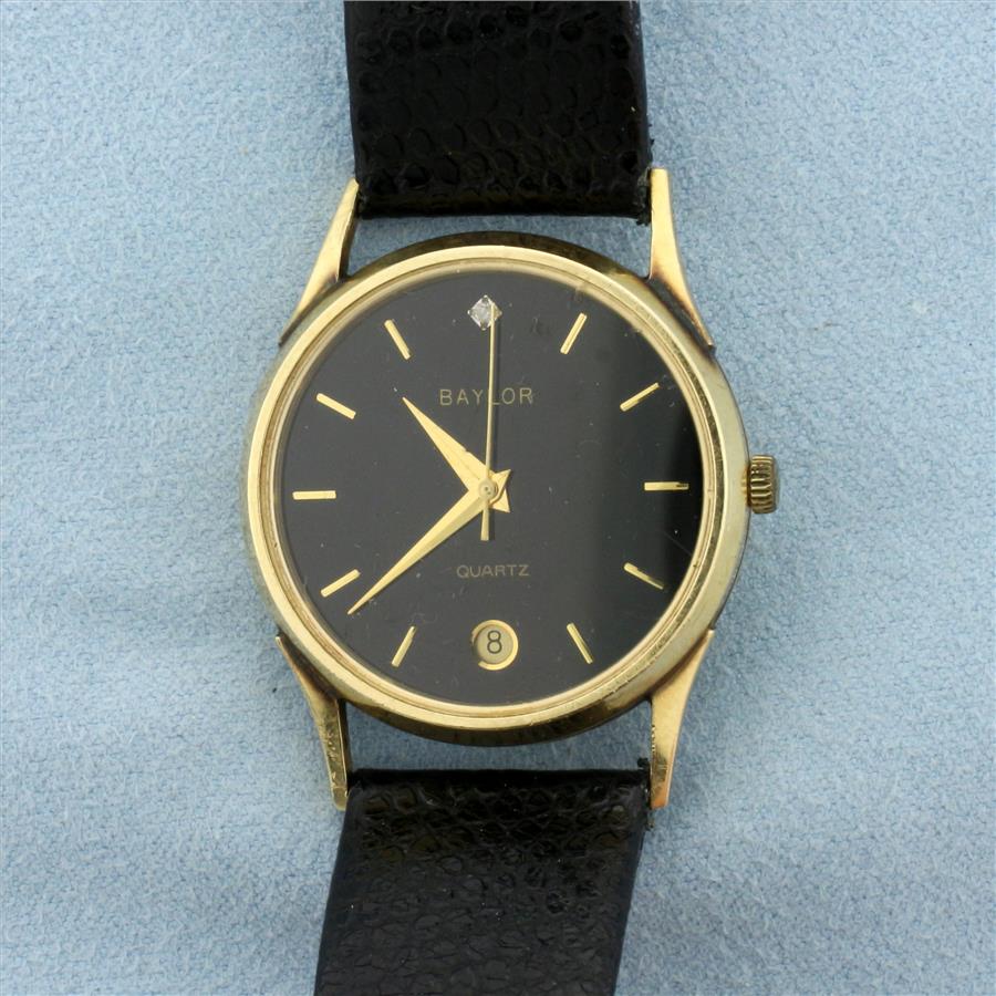Vintage Mens Baylor Diamond Quartz Watch in Solid 14k Yellow Gold Case
