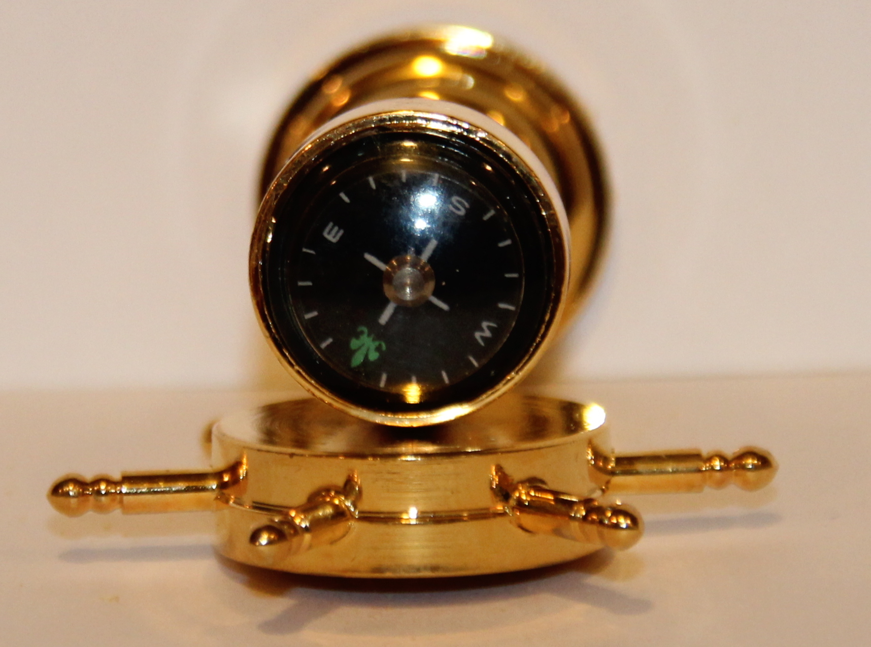 Vintage Miniature Working Compass Captain's Ship Wheel Collectible