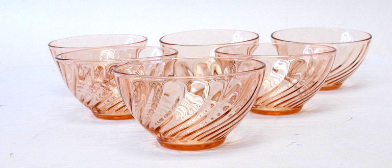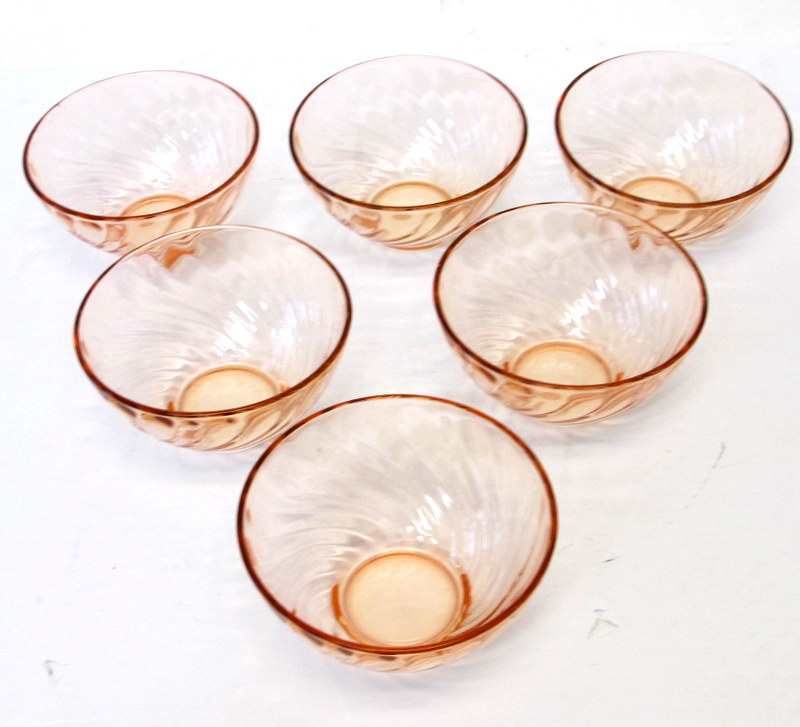 Vintage Pink Depression Glass Fruit/Salad Bowl Set of 6