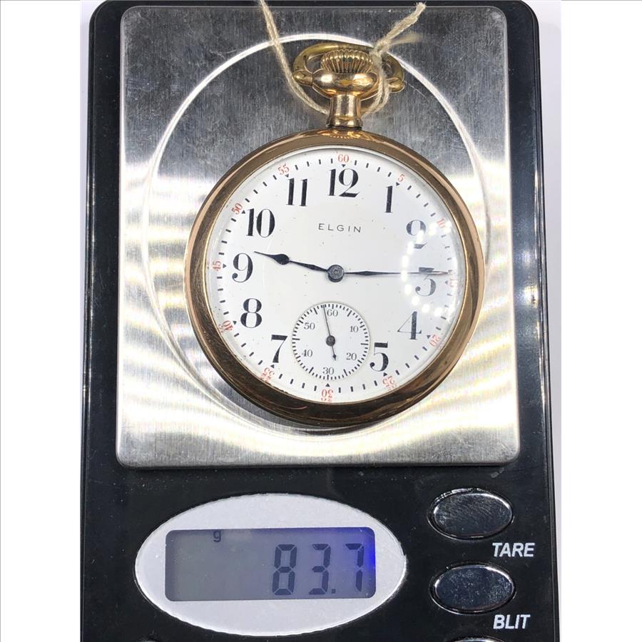 Vintage Rolled Gold Elgin Open Face Pocket Watch - 83.7 Grams Total Weight