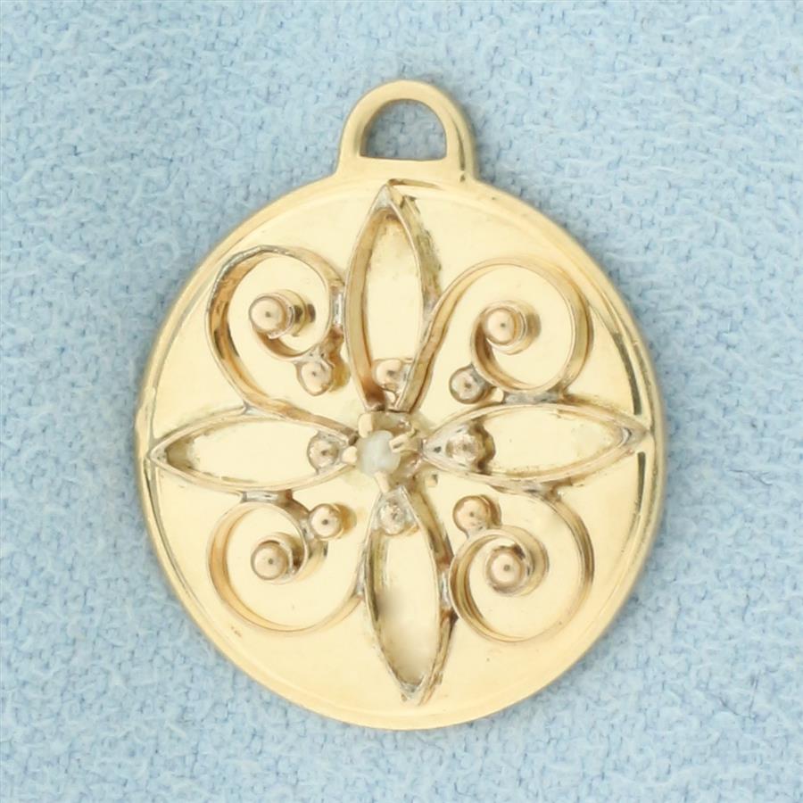 Vintage Seed Pearl Medallion Charm in 14k Yellow Gold